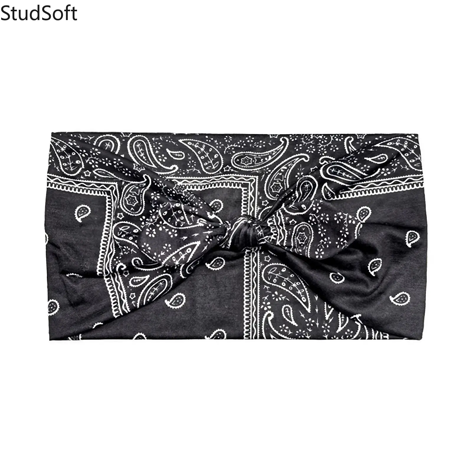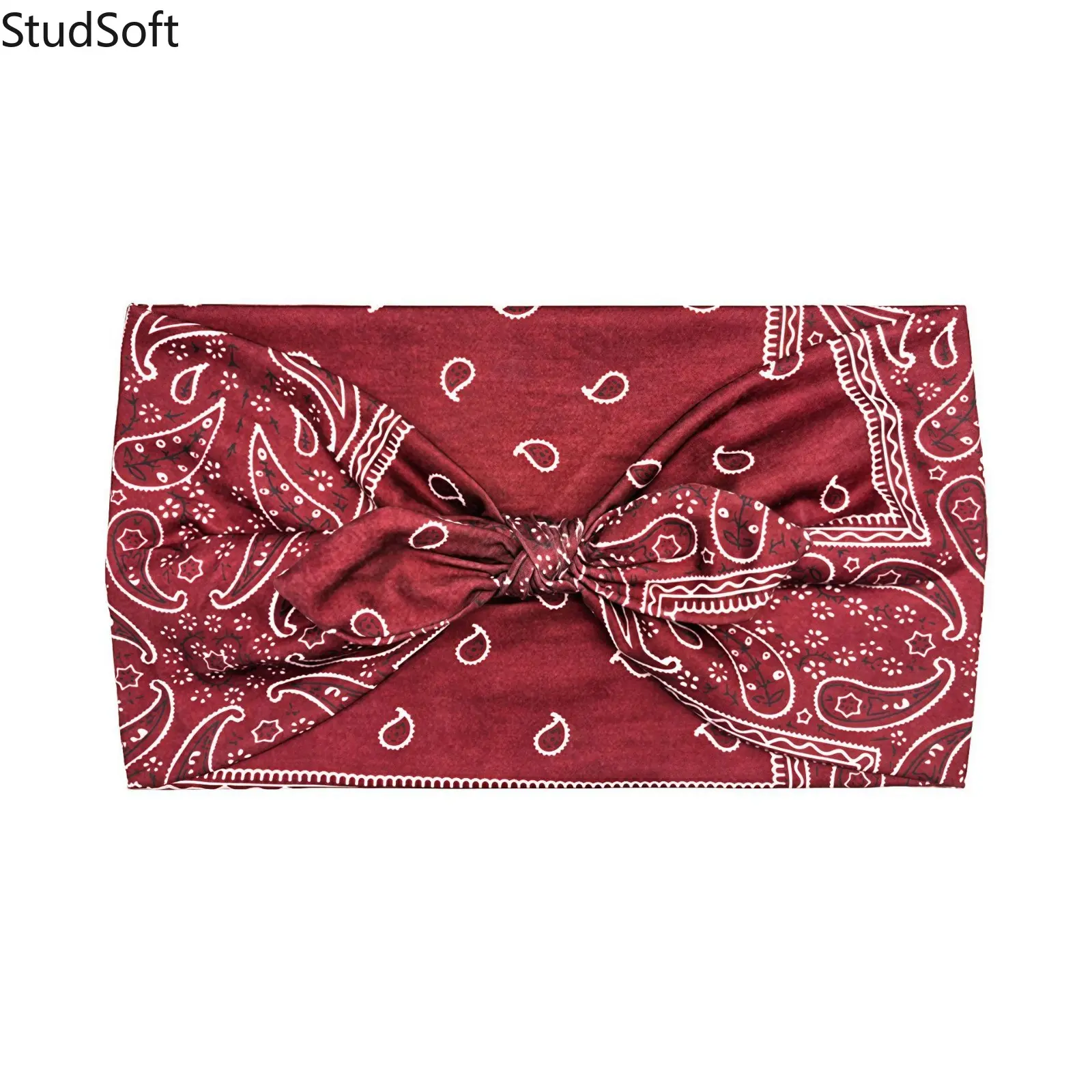 5. Knotted Bunny Paisley Print Bow Ear Headbands, Elastic Yoga Sports Sweatbands, Absorbent Non-Slip Hair Wraps for Women, 6 Pack