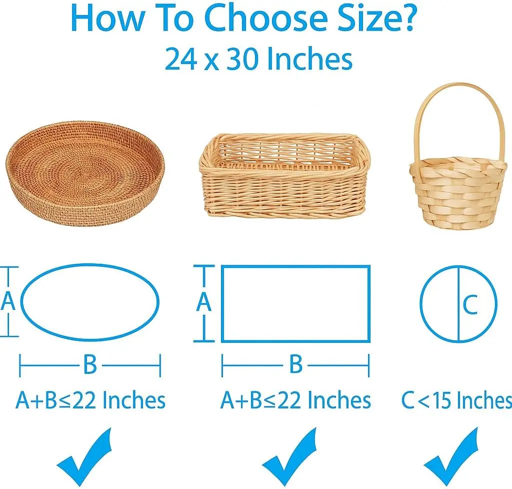 ·Large Size & Value Pack – Includes 15 pack of clear cellophane gift bags, each measuring 24 x 30 inches (60 x 76 cm,opening on 24 inch). Perfect for wrapping large gift baskets, round trays (up to 15" diameter), and rectangular baskets where height + width is within 22 inches.