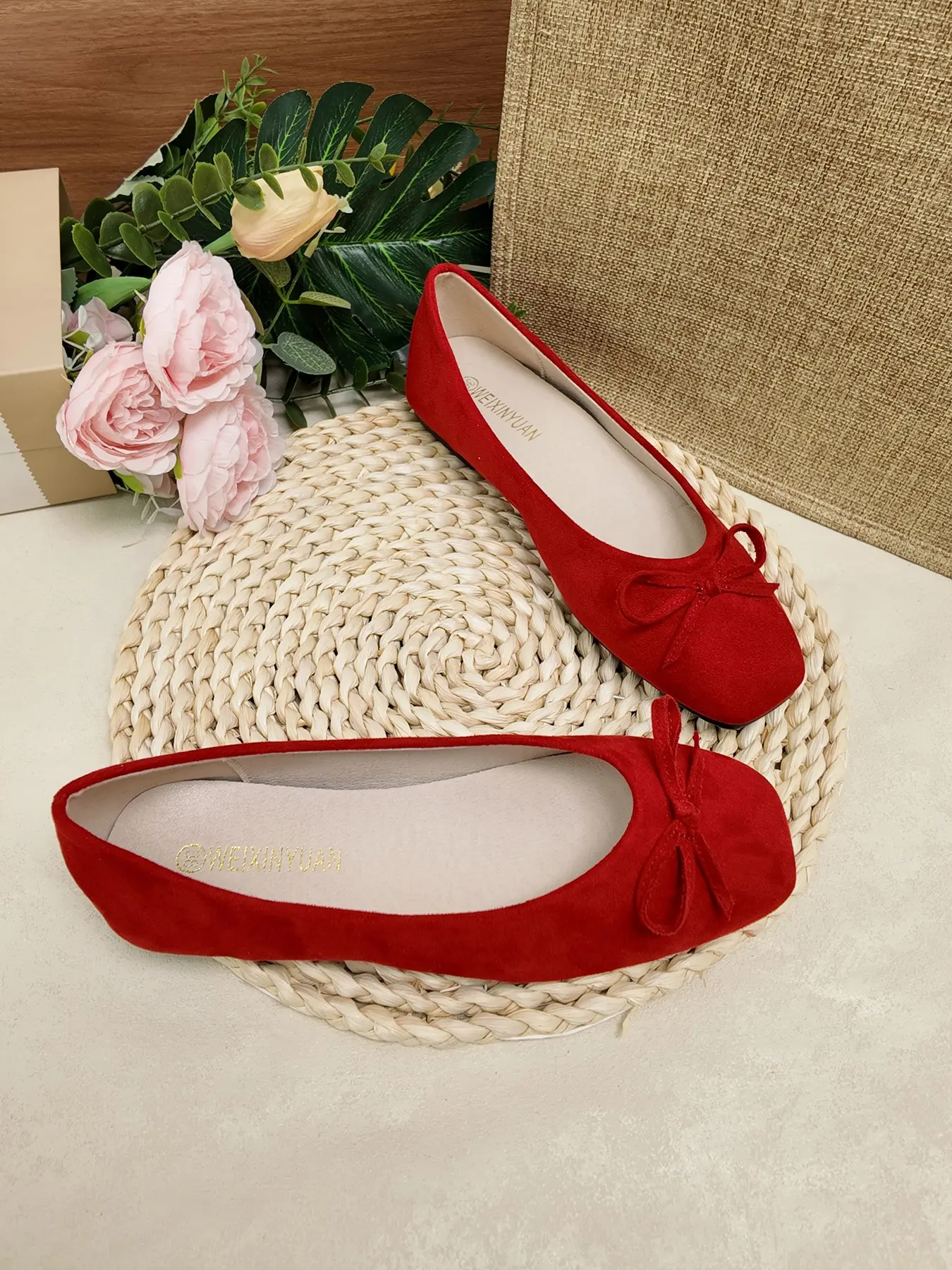2026 New Striped Square Toe Flat Shoes, French Soft Sole Low Top Bow Single Shoe, Commuter Versatile Slimming Women's Shoes