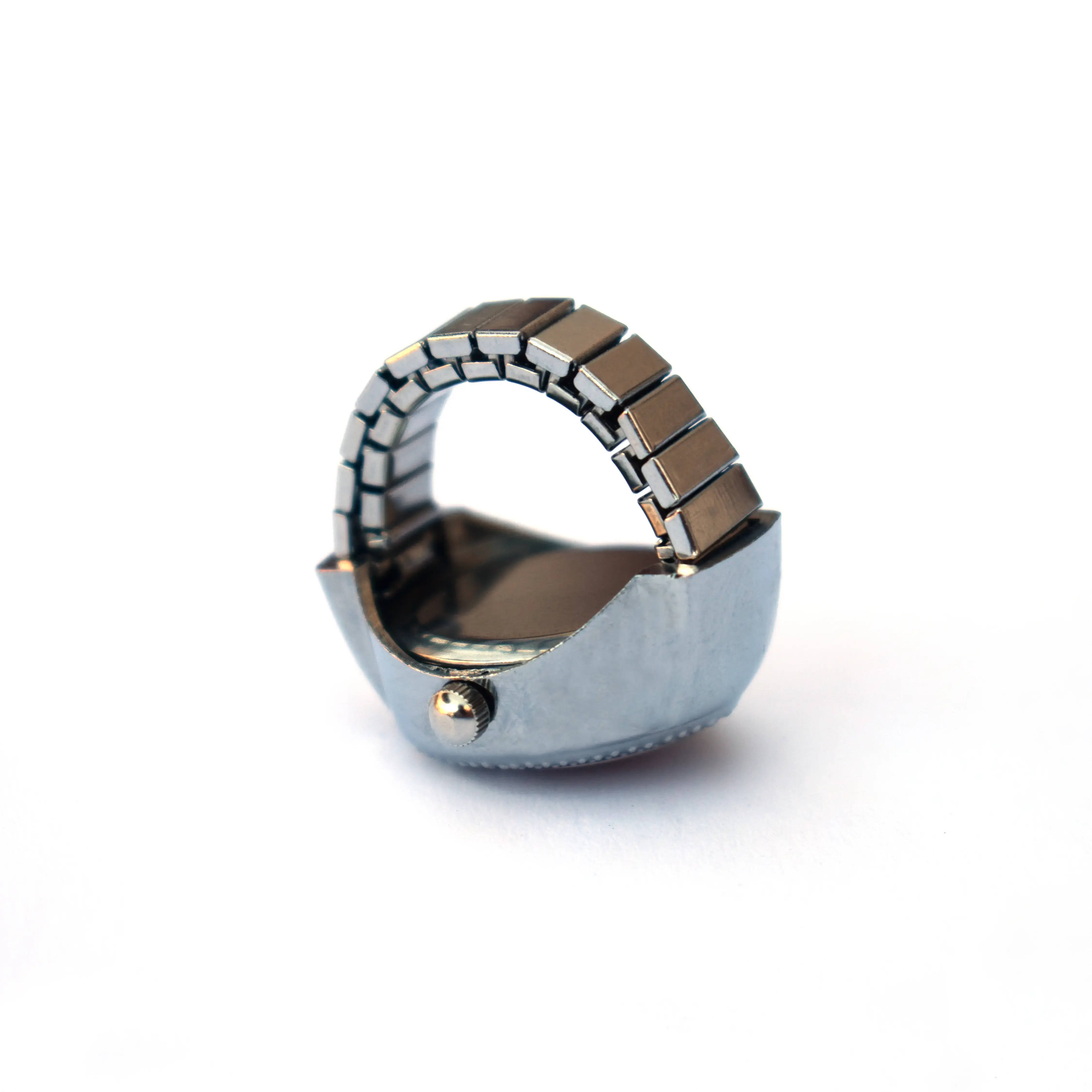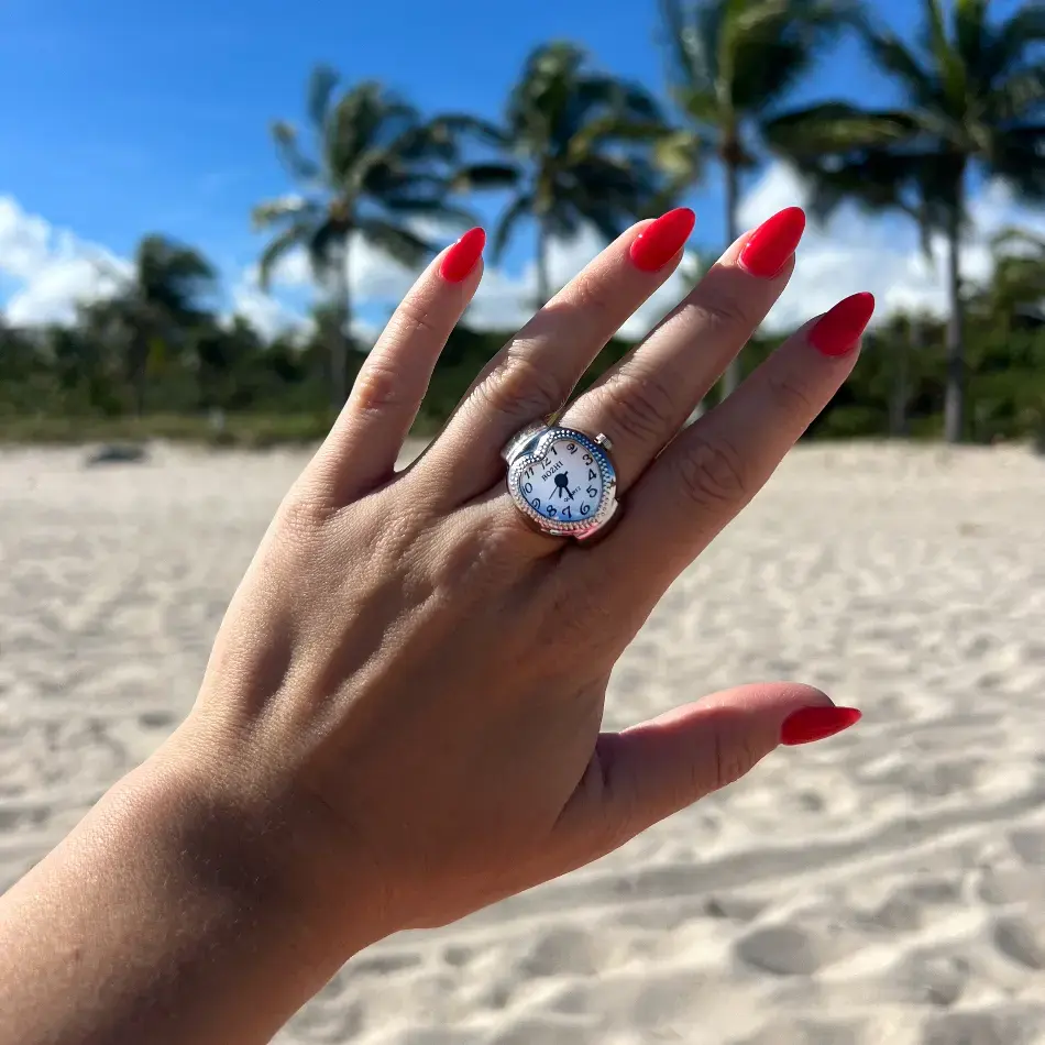 A fully functional mini watch ring inspired by early 2000s style. This unique, eye catching accessory adds a bold yet playful touch to any outfit. Wear it solo or stack it with your everyday rings for a retro inspired look that always gets noticed.