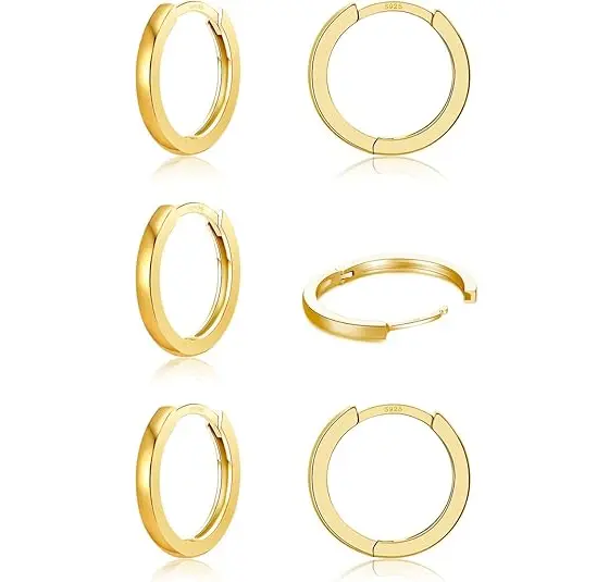 Hypoallergenic Material: Our small gold hoop earrings feature posts made from 925 sterling silver, ensuring they are healthy and hypoallergenic. You can wear these huggie hoop earrings with confidence. The flexible clasps make them easy to put on and take off, fitting securely without being too tight or too loose, providing a safe, comfortable, and healthy wearing experience.