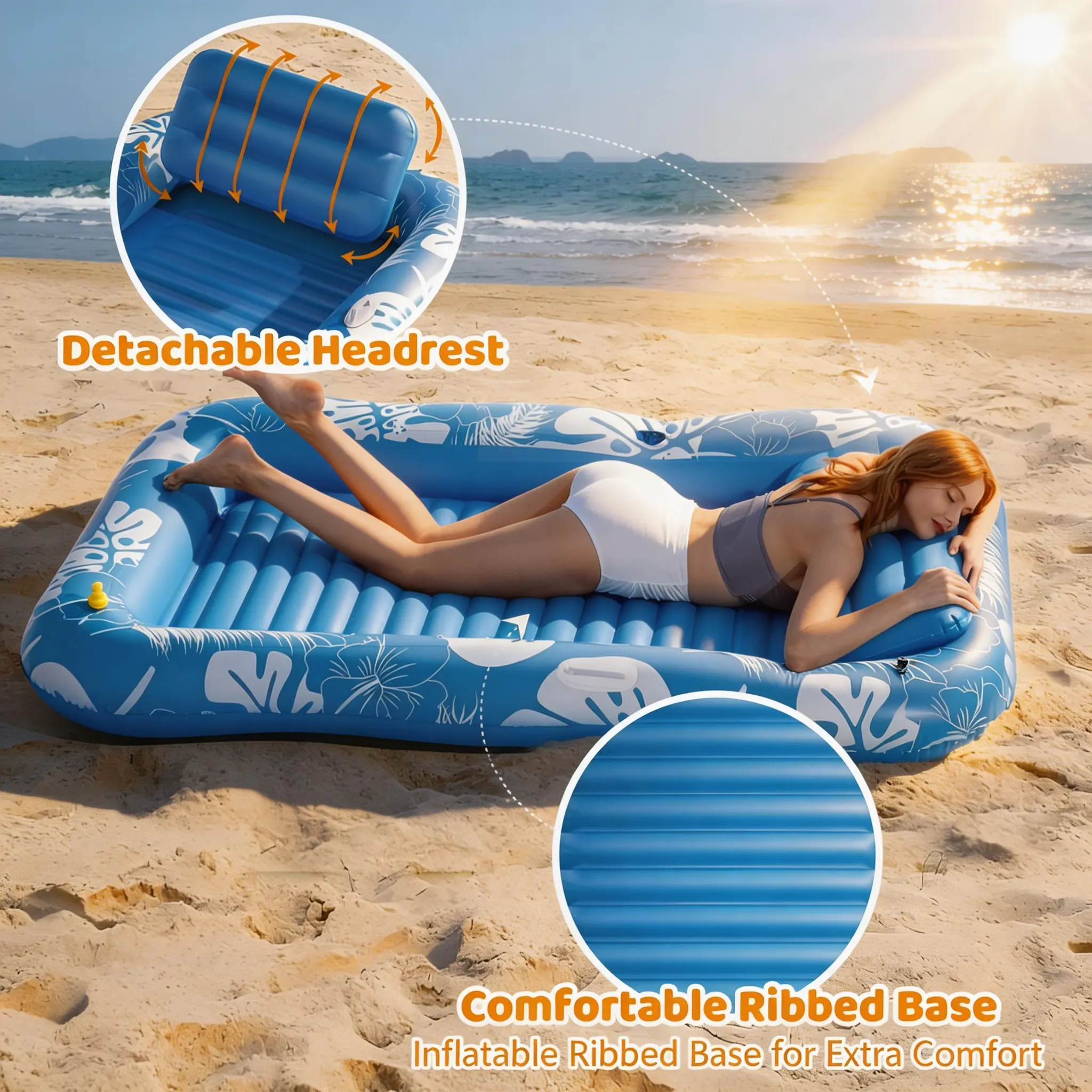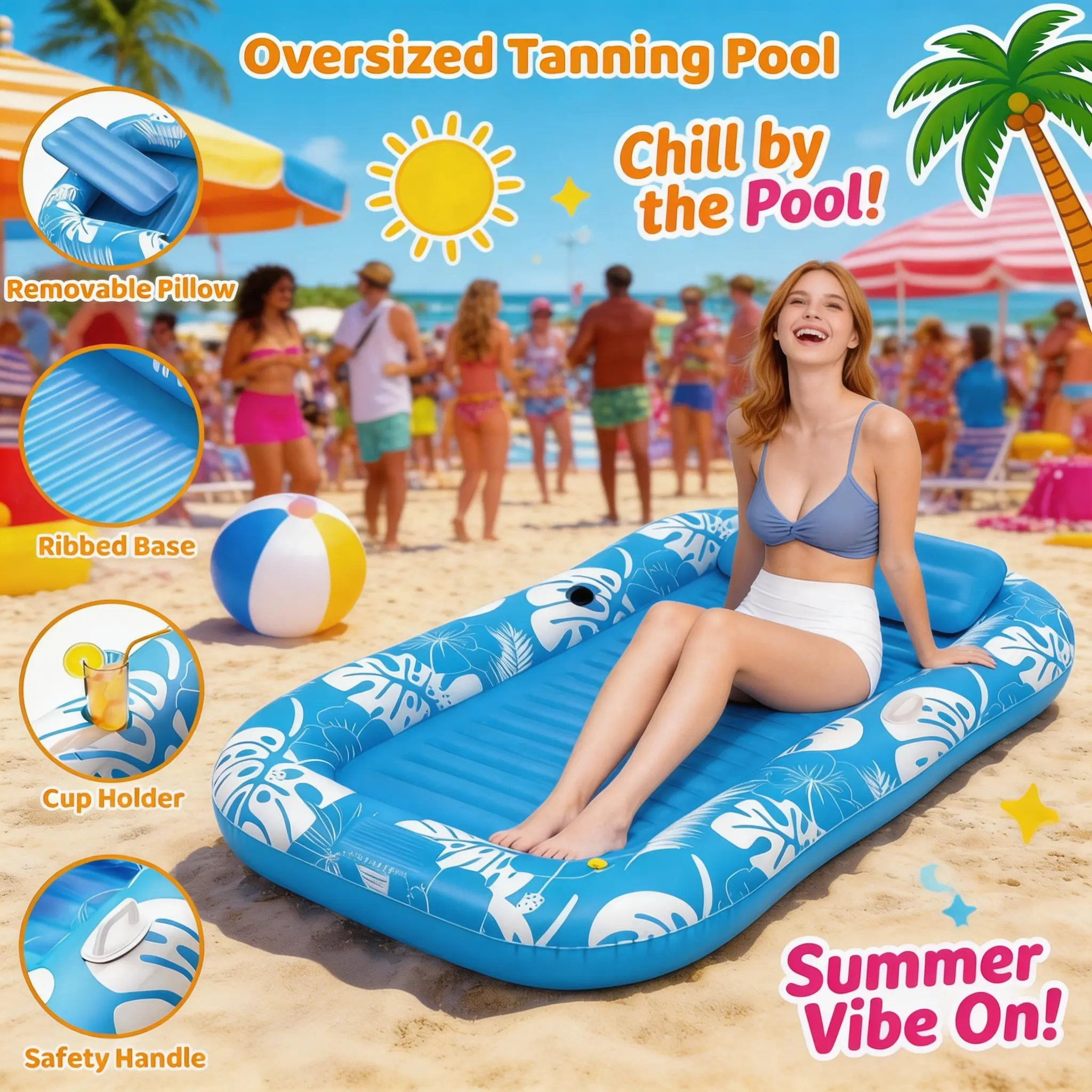 It’s more than a pool float — it’s your tanning bed, sun lounger, mini pool, and party raft all in one. Designed for maximum relaxation and convenience on hot summer days.