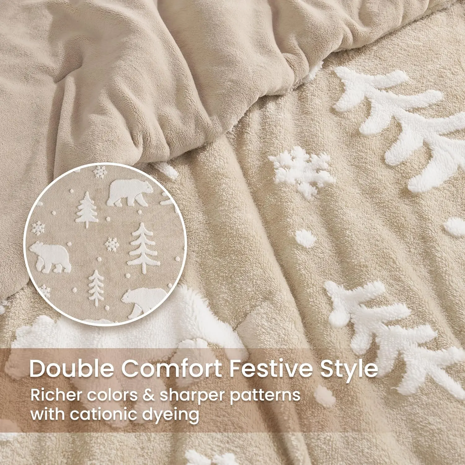 Ultra-Soft & Warm Winter Comfort: Luxurious 280GSM fluffy fleece (face) + silky crystal fleece (inside) for cloud-like softness on both sides.Cozy fabric traps heat without overheating, keeping you cozy all winter.Christmas Bedding: Stylish knitted high-low Polar Bear pattern adds texture and elegance to your bedroom. Plush, fluffy look pairs easily with any bedding for a luxe hotel vibe.Premium Durability: Made with Triple-Anti Fleece (anti-fading/shedding/static) + reinforced dot stitching to prevent clumping.Stays thick and fluffy even after washing.OEKO-TEX Certified for safe, chemical-free use.Perfect Gift-Ready Set: An ideal winter gift for family, couples, or friends.The super soft, warm comforter shows love through comfort-great for holidays, housewarmings, or birthdays.Machine washable (cold, gentle cycle), tumble dry low.No bleach or ironing required.Vacuum-packed for efficient delivery, this comforter is engineered to regain its full loft-simply allow 24–48 hours to expand naturally or tumble dry on low with tennis balls for maximum plushness.Low-maintenance and designed to stay luxuriously soft for years.