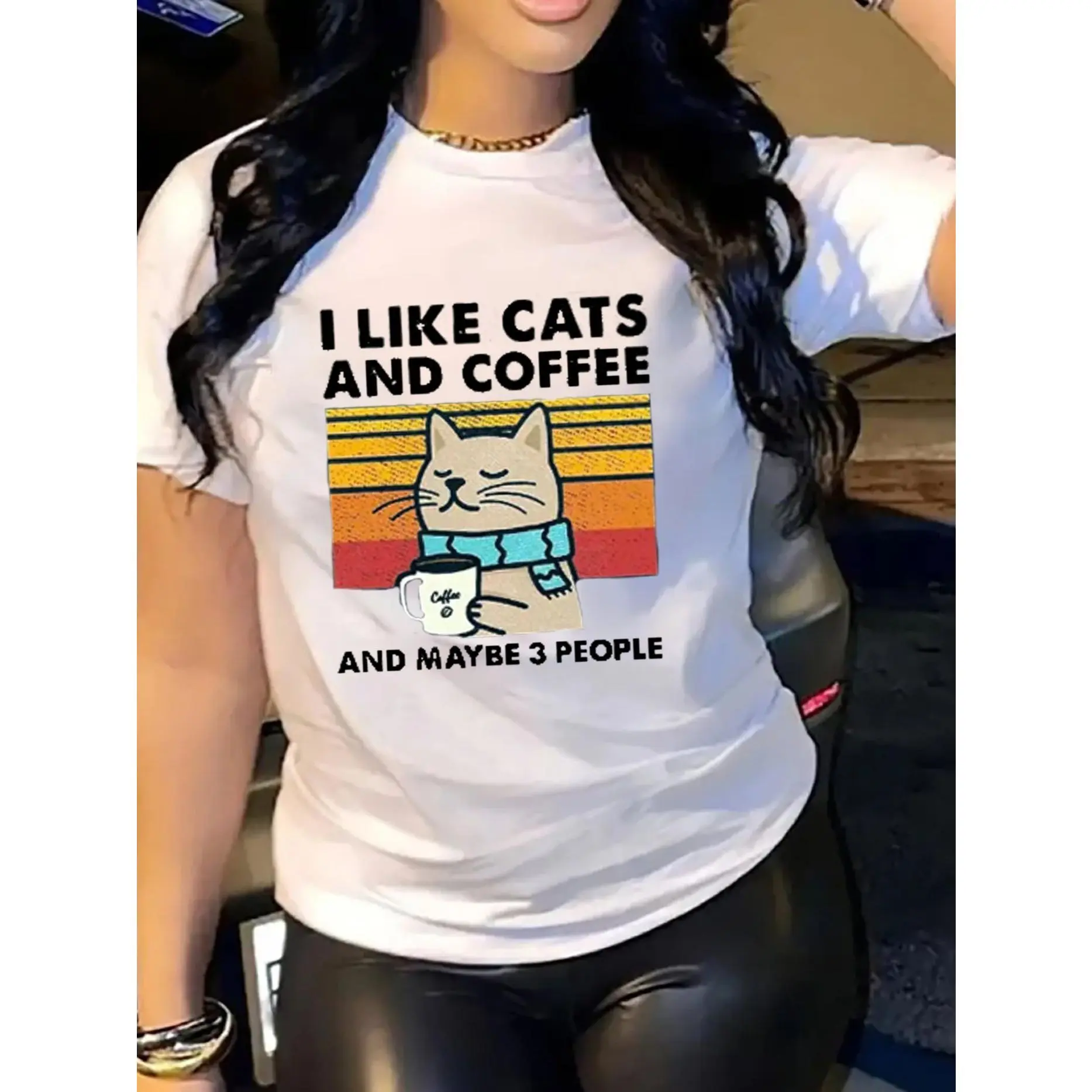 Letter Print T-shirt, Leopard Print Retro Style Short Sleeve Casual Top for, women'S Clothing