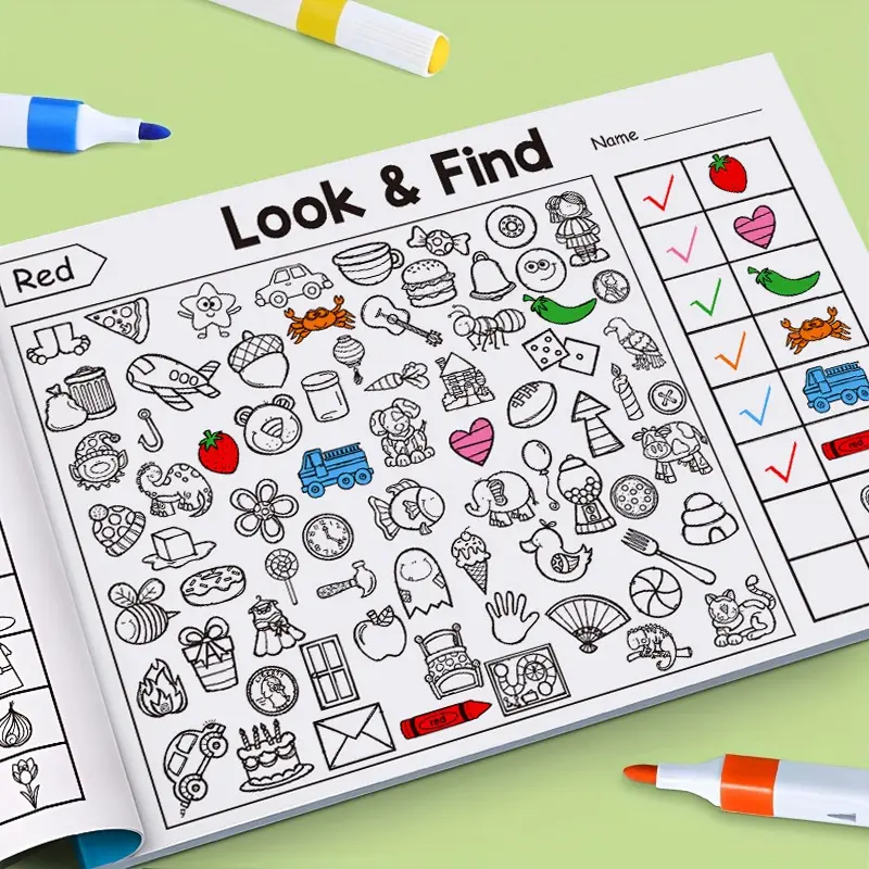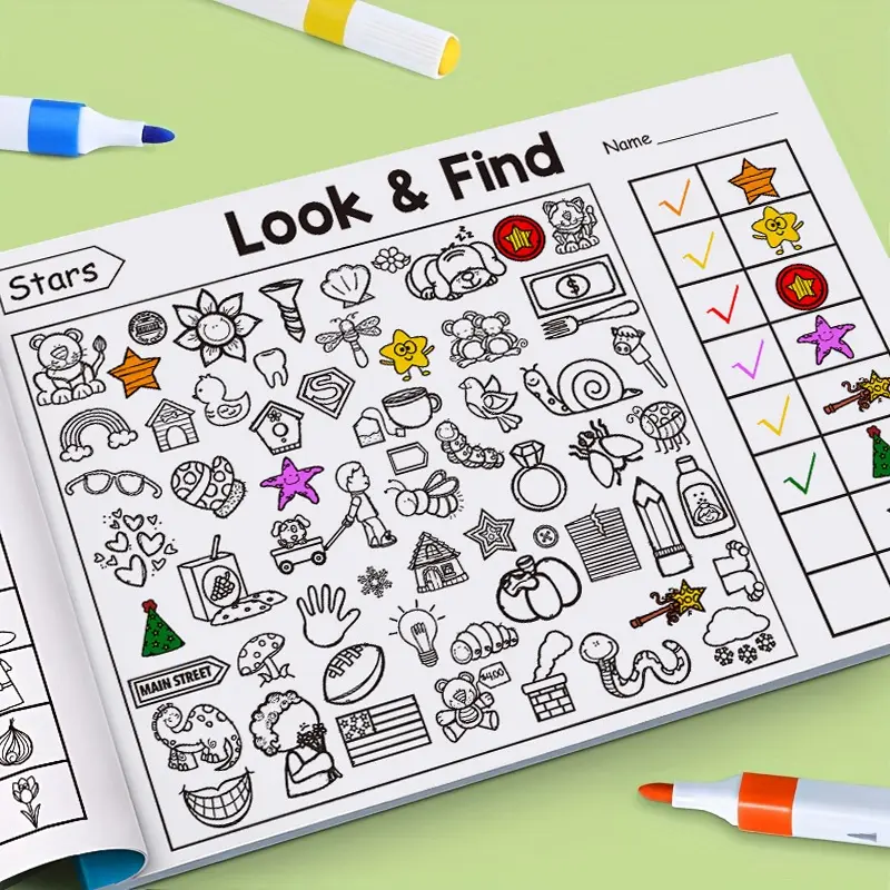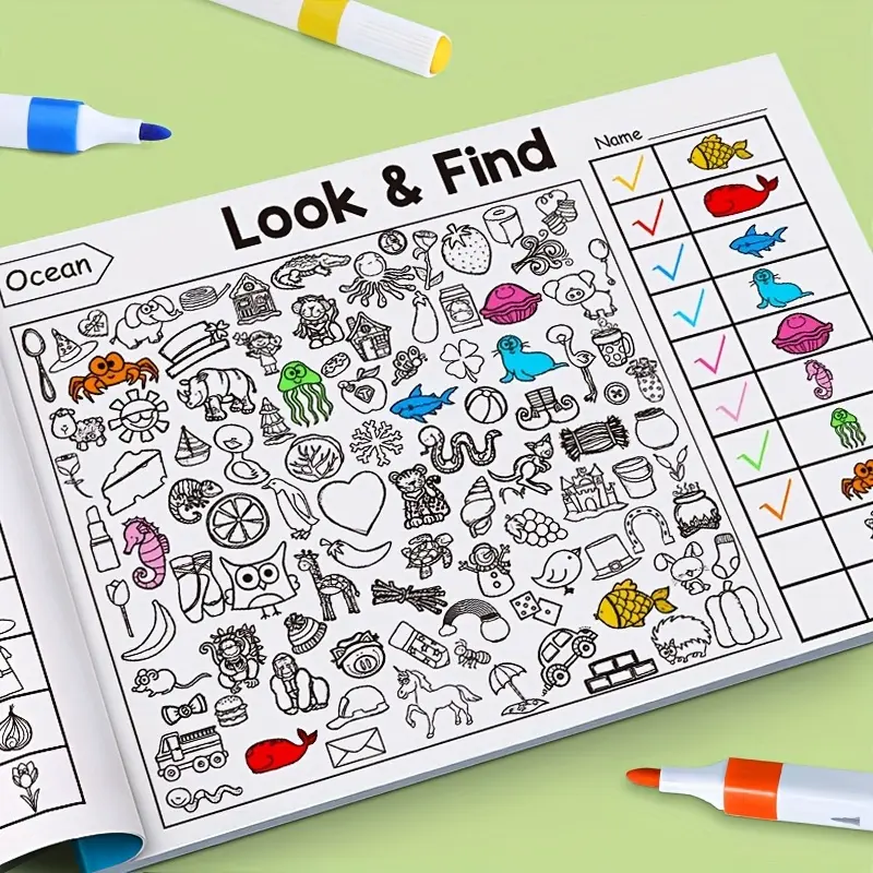 1000+ high-resolution pictures cover kid-favorite themes: Animals, Transportation, Numbers (1-20 tracing), Letters (A-Z practice).Every page combines coloring and hidden-object hunting for double engagement.
