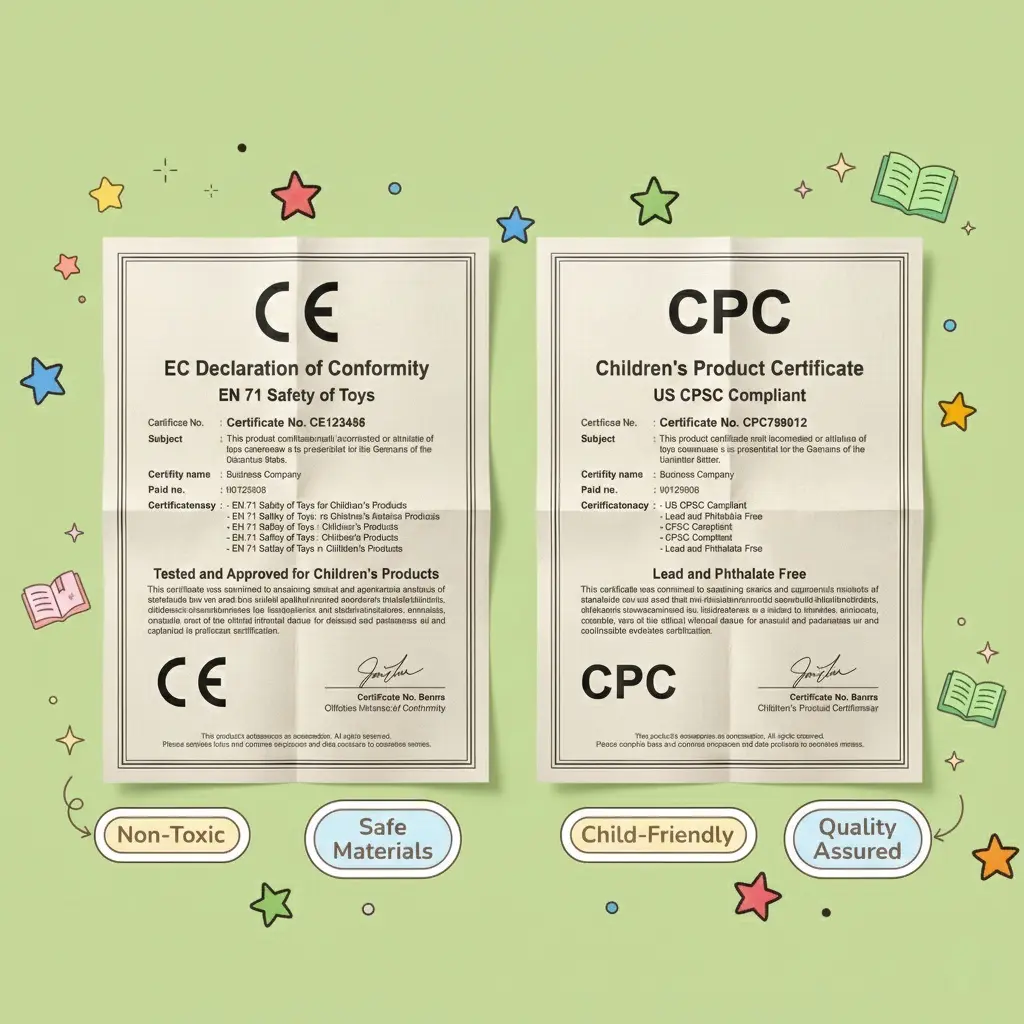 Tested to meet strict US & EU safety standards (per CCI250700984EN-1 CE Certificate/Report: EN 71; CCI250700984EN-2 CPC Certificate/Report: ASTM F963-23, CPSIA; CCI250700984EN-3 RSL Report: phthalate compliance):