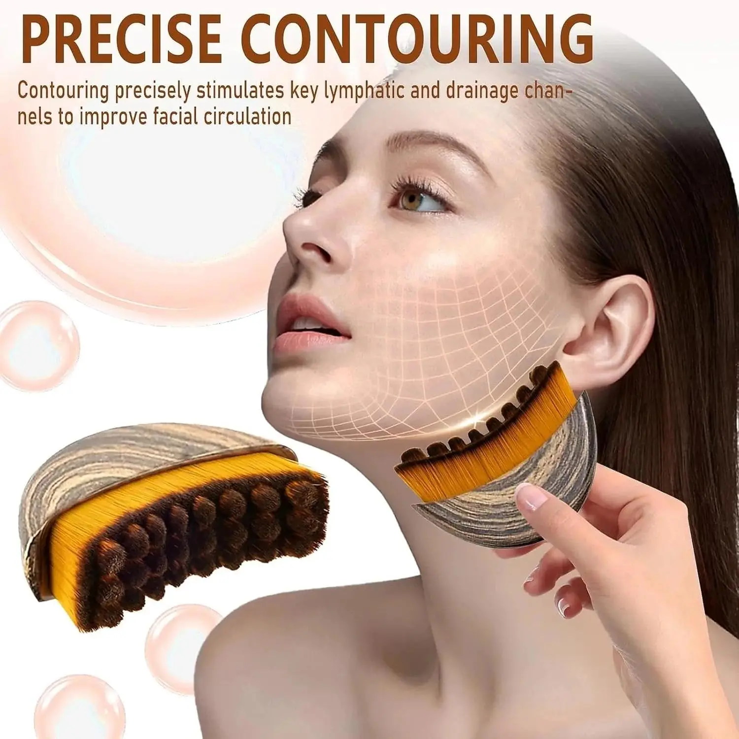 Ergonomic Lymphatic Contour Brush: Specifically designed for facial lymphatic drainage—not a dry brush, makeup brush, or cleansing brush. This specialized tool offers an effective, user-friendly way to incorporate lymphatic drainage into both professional treatments and daily self-care routines.