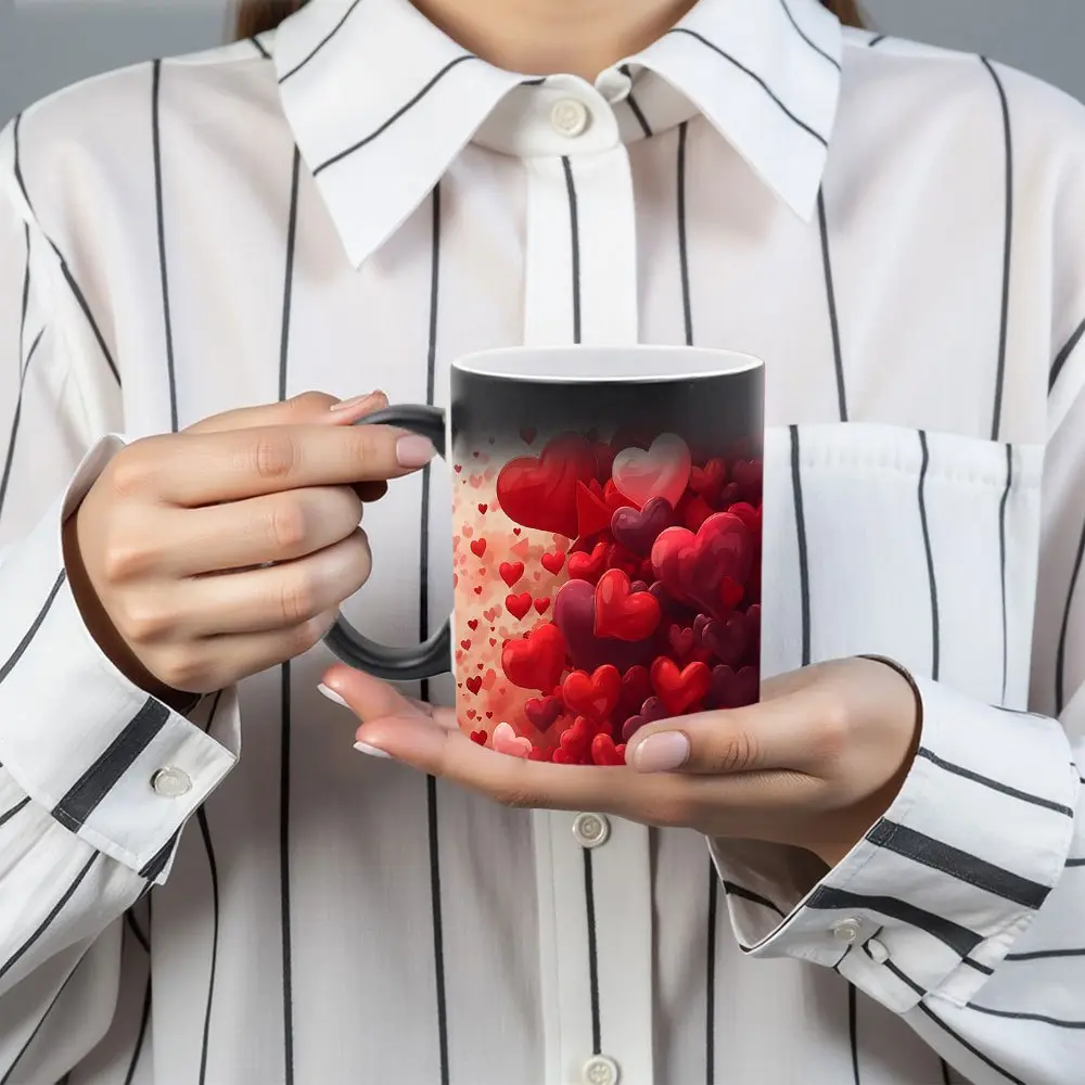 1 11 oz Magic Mug, Heat-Changing - Ceramic Mug, Love Design, Perfect for Valentine's Day, Weddings, Anniversaries, Birthdays and Christmas