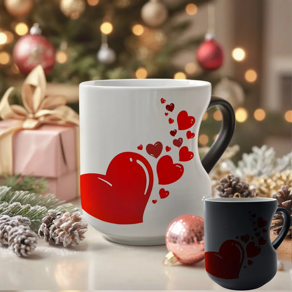 Heart-Shaped Handle Temperature Sensing Ceramic Mug - 11 oz/330 ml, Color Changing Coffee Mug, Hot and Cold Conversion, Reusable, Non-Slip Design, Ideal Gift for Mother's Day or Celebrations