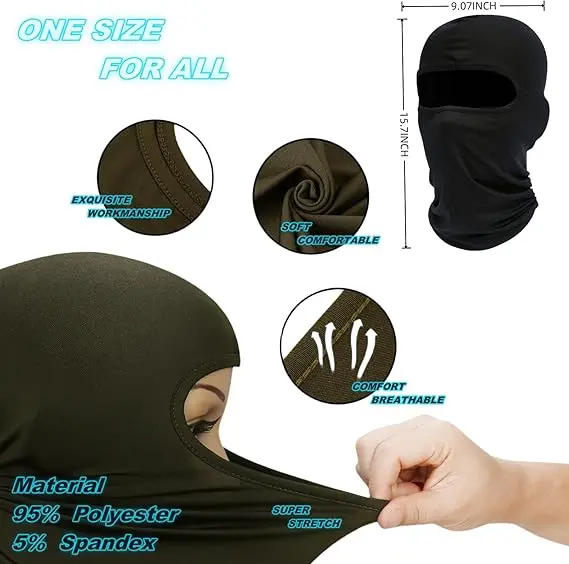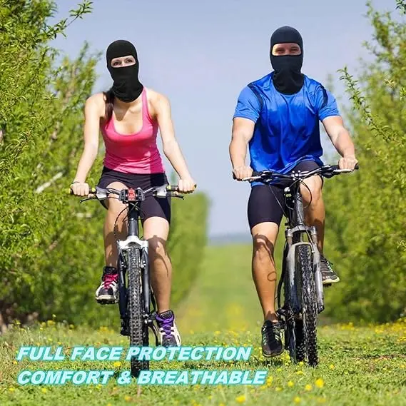 MULTIPURPOSE: Our face mask is designed for outdoor sports, cycling, running, hiking, skiing, snowboarding, motorcycling, mountain biking, hunting, fishing, skating, etc. It can protect your face, neck, ears, head and hair from sun, dust, cold and wind.Cooling balaclava mask for motorcycle has exceptional absorbing and wicking features to keep you dry while wearing.SUN PROTECTION: The balaclava mask is made of high-quality polyester and spandex, which has a good 50+ sun-blocking effect. wearing it as a face scarf, headband, bandanna mask gater, facemask gaiter or neck gaiter can protect your face, and avoid your nose and mouth clean from breathing dust.BREATHABLE: This neck gaiters for men and women.The balaclava face mask has excellent and moisture-wicking capabilities, which can effectively remove sweat and moisture from your face. keeps your head cool and comfortable in hot conditions. also keeps you warm in the winter, and can be used as a ski mask. Can be used daily in all seasons.ONE SIZE FITS ALL: The full face cover cooling neck gaiter can make you feel more cool .The balaclava mask is stretchable and can be auto adjusted to fit most head sizes. This ski mask with its stretchy fabric is durable and not easy to break, ensuring a comfortable and tight fit.EASY TO WEAR: The balaclava head mask face cover shield is easy to wear with good stretchy and elasticity. With long and wide sleeves can cover your face, neck, ears and even your hair, providing you with maximum protection, making them perfect for travel and outdoor adventures.