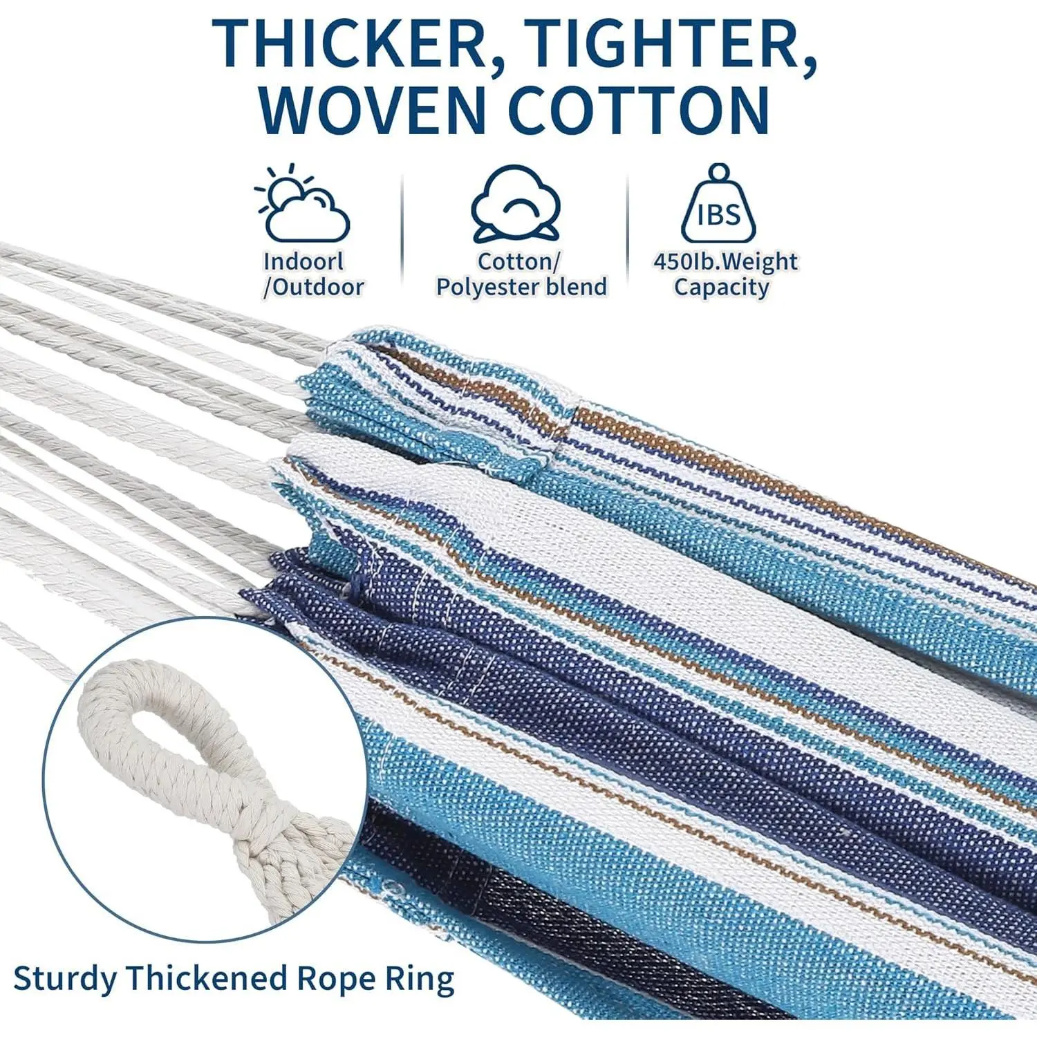 Single Hammock with Stand, Brazilian Style Cotton Fabric Portable Lounger, 450 lbs Capacity Heavy Duty, Easy Assembly Indoor Outdoor Use for Backyard, Balcony, Camping,Ocean Color