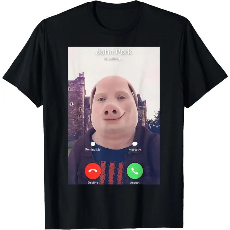 Graphic Tee John Pork (Pig God) Meme Call Screen Parody Funny Horror Humor 100% Cotton Relaxed Loose Casual Short Sleeve T-Shirt for Meme Enthusiasts & MC Fans-ZB