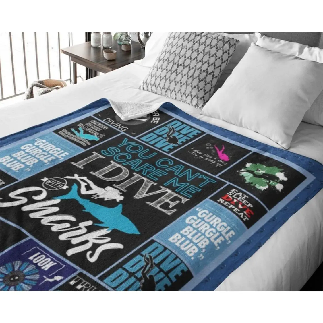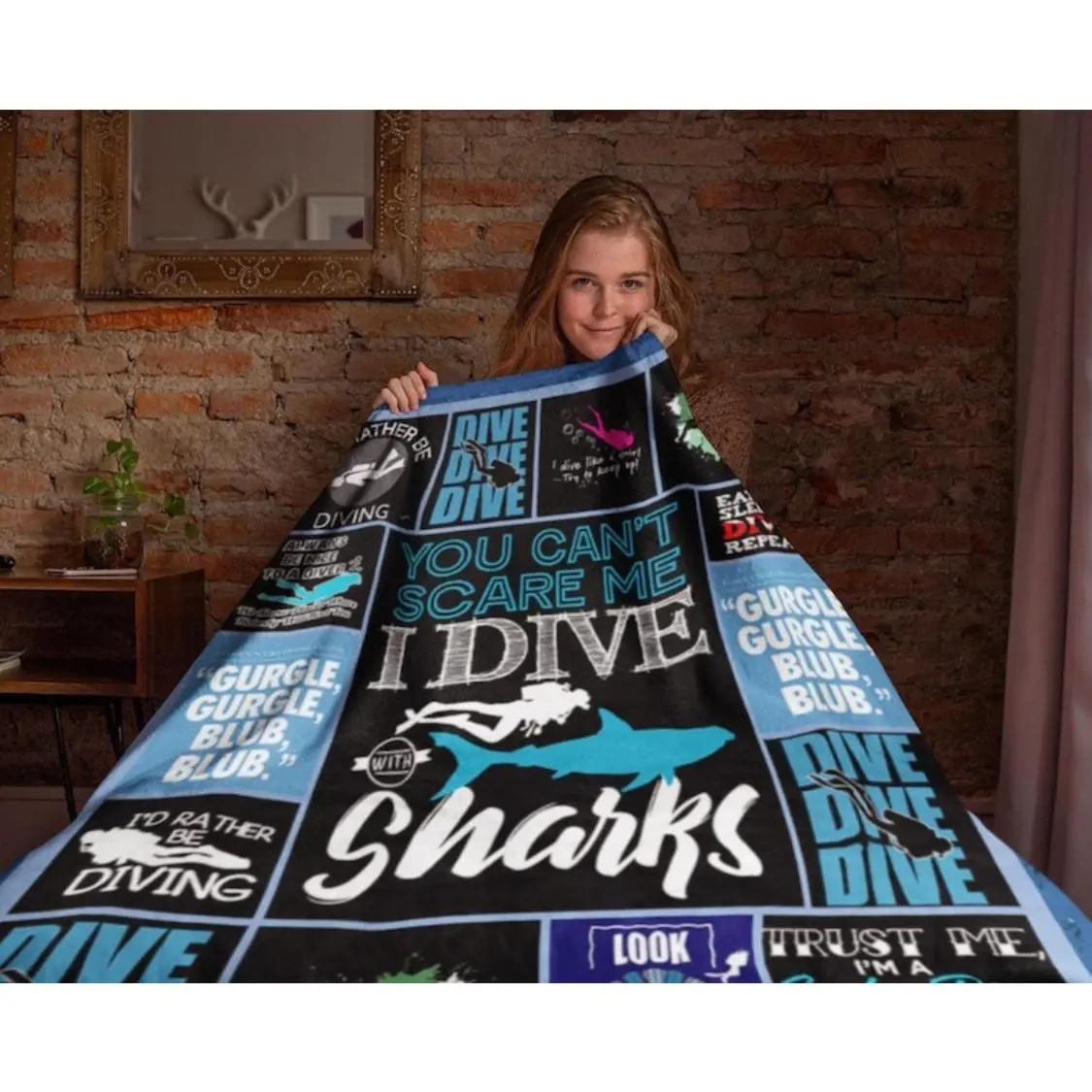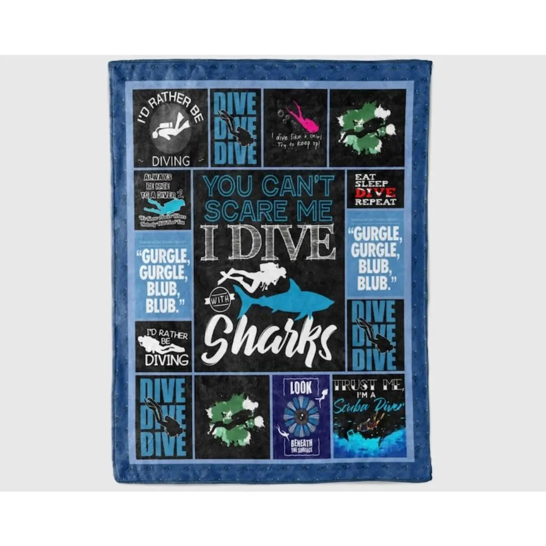 I Dive with Sharks Blanket, Scuba Diving Blanket, Scuba Diver Blanket, Dive Blanket, Snorkeling Blanket, Ocean Sport Blanket, Ocean Gifts