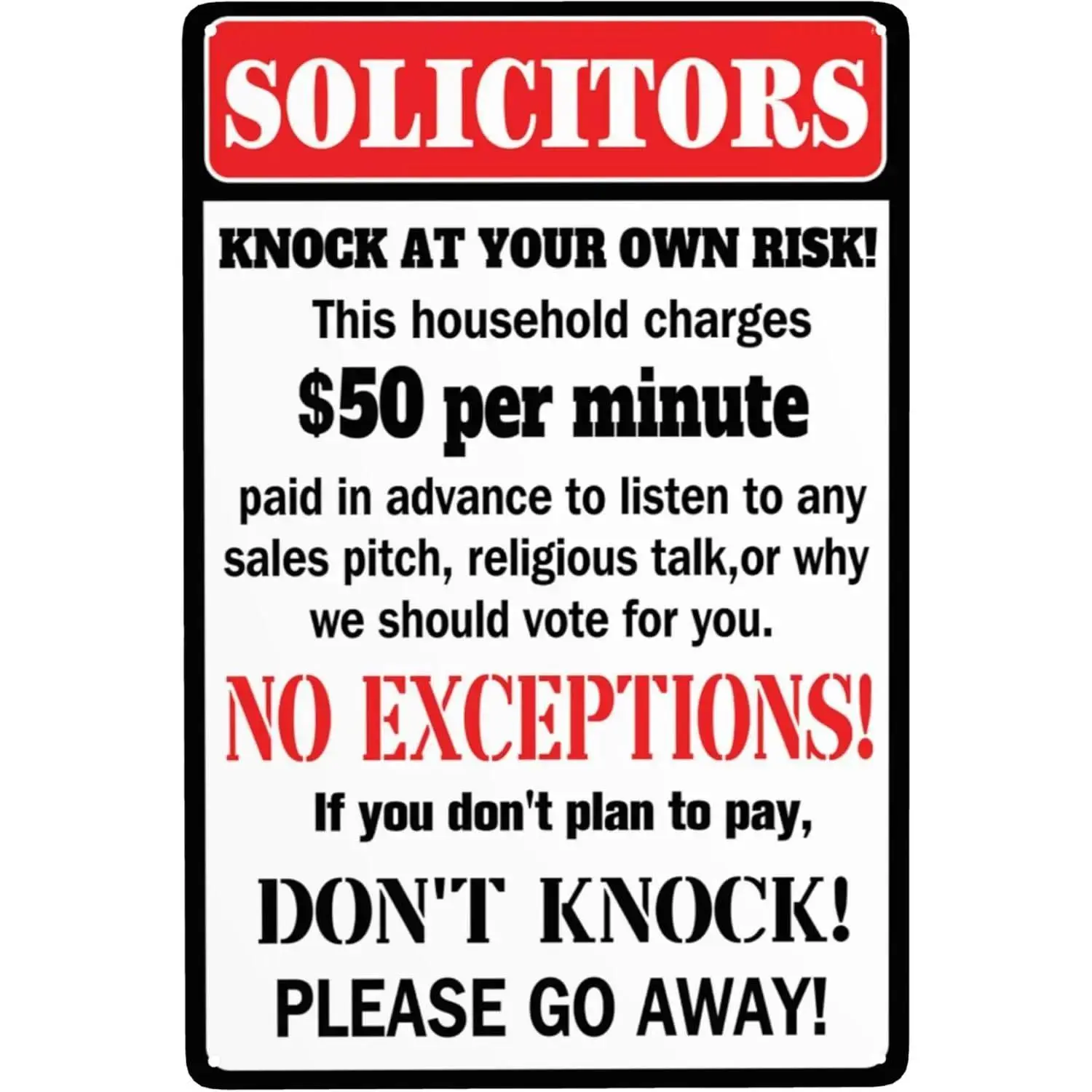 Humorous No Soliciting Door Sign With Knock At Your Own Risk Message Yard Sign Wall Art Motivational Quote Urban Decor 12x8 Inches