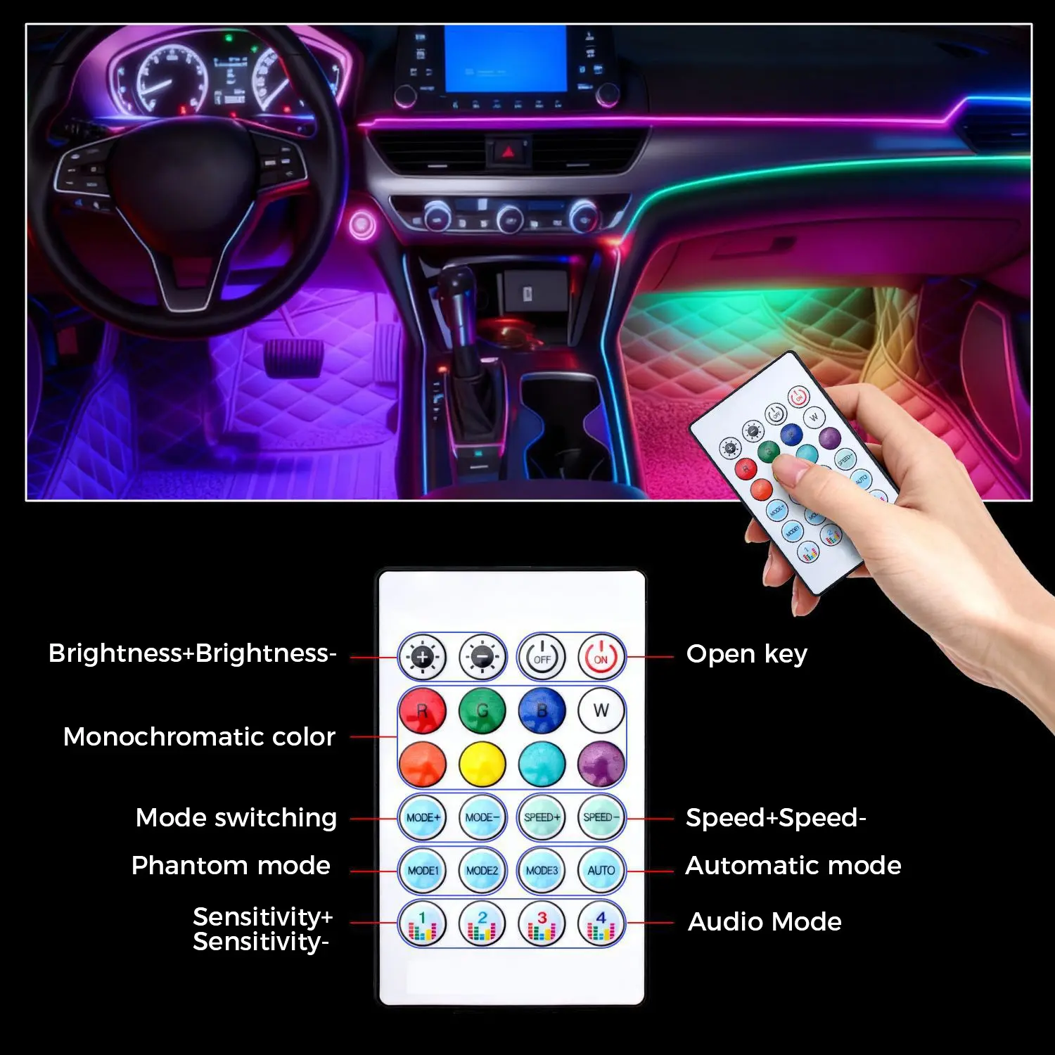 ·DIY Ambient Lighting – Adds glow to footwells, dashboard, cup holders, door panels.