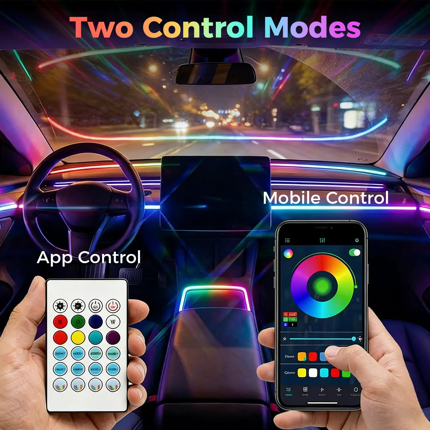 Plug and play. APP control. Music sync. Choose from millions of colors. And you get to pick the setup that fits your car.