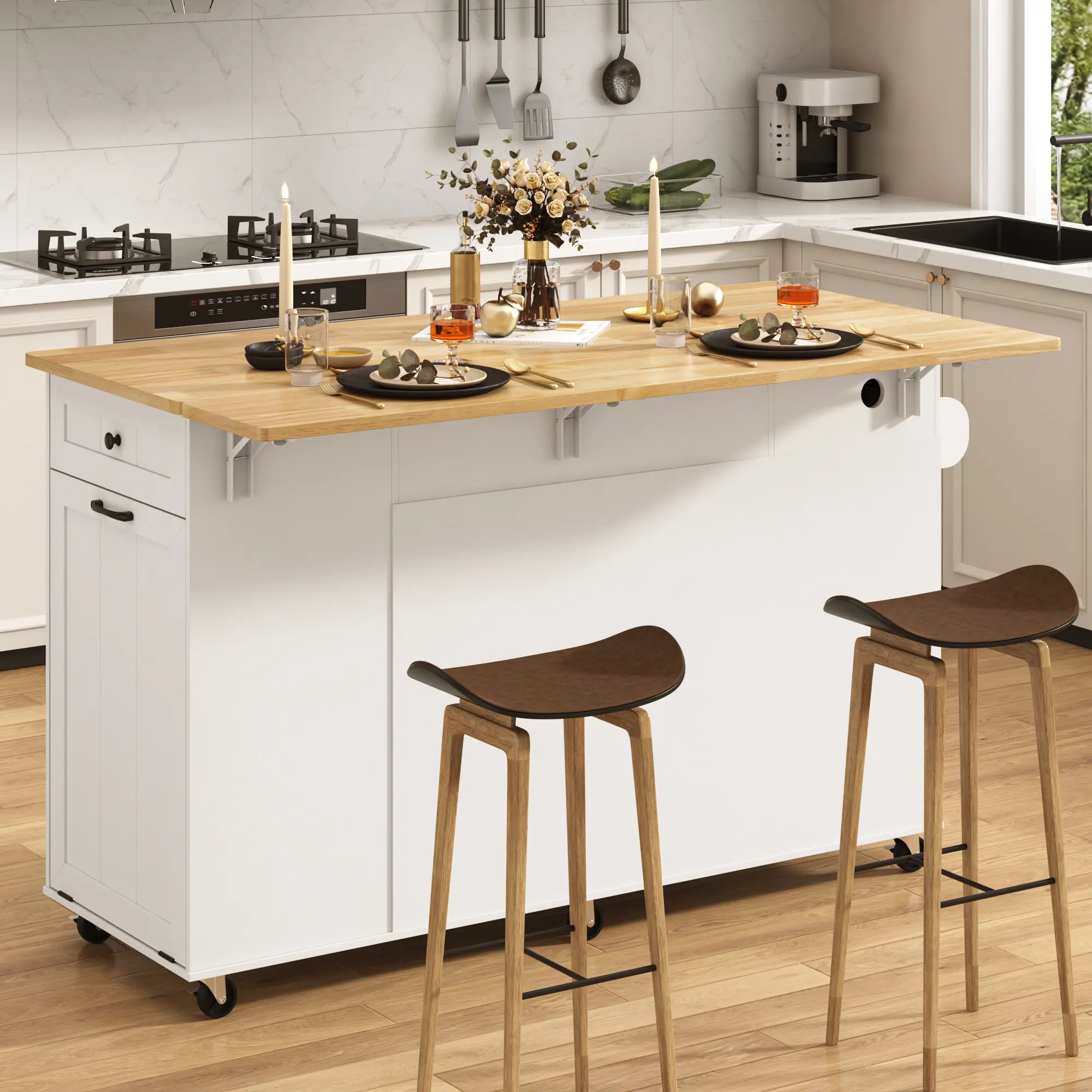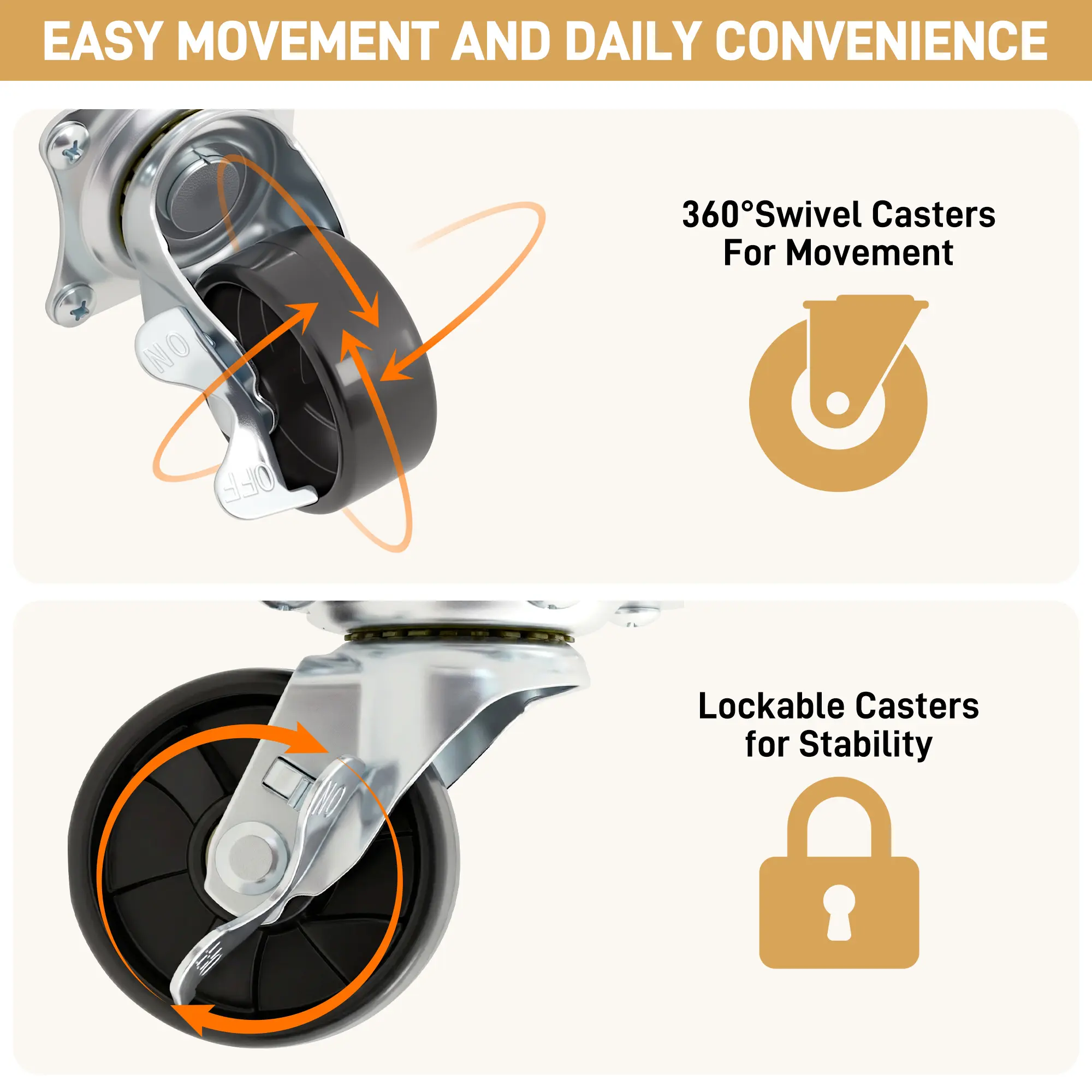 Smooth Mobility: Features flexible rolling wheels for easy movement around the kitchen or dining area, letting you adjust layout and use space efficiently.
