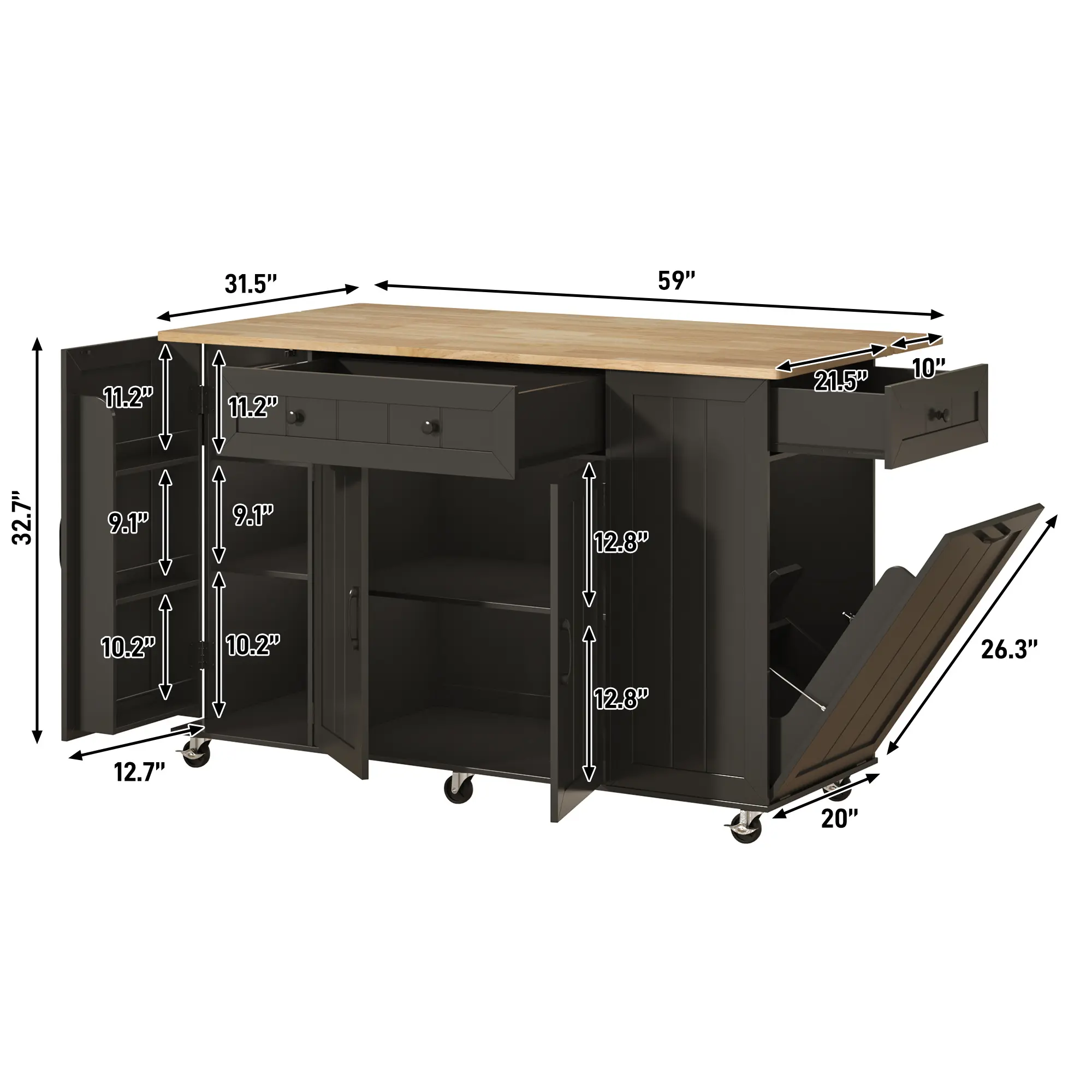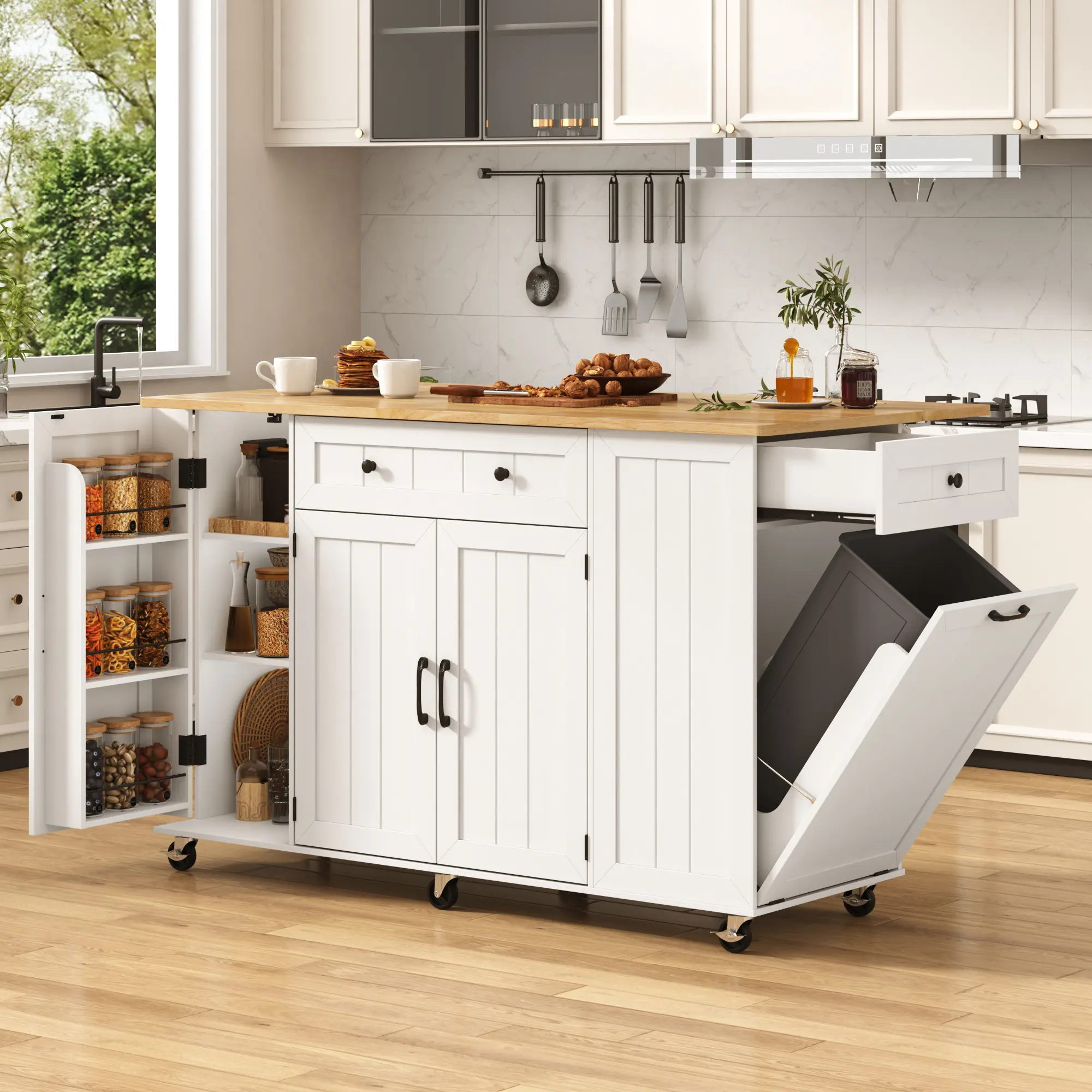 Hidden Trash Cabinet: Designed with a concealed tilt-out trash storage compartment to keep your kitchen tidy, clean and visually streamlined.