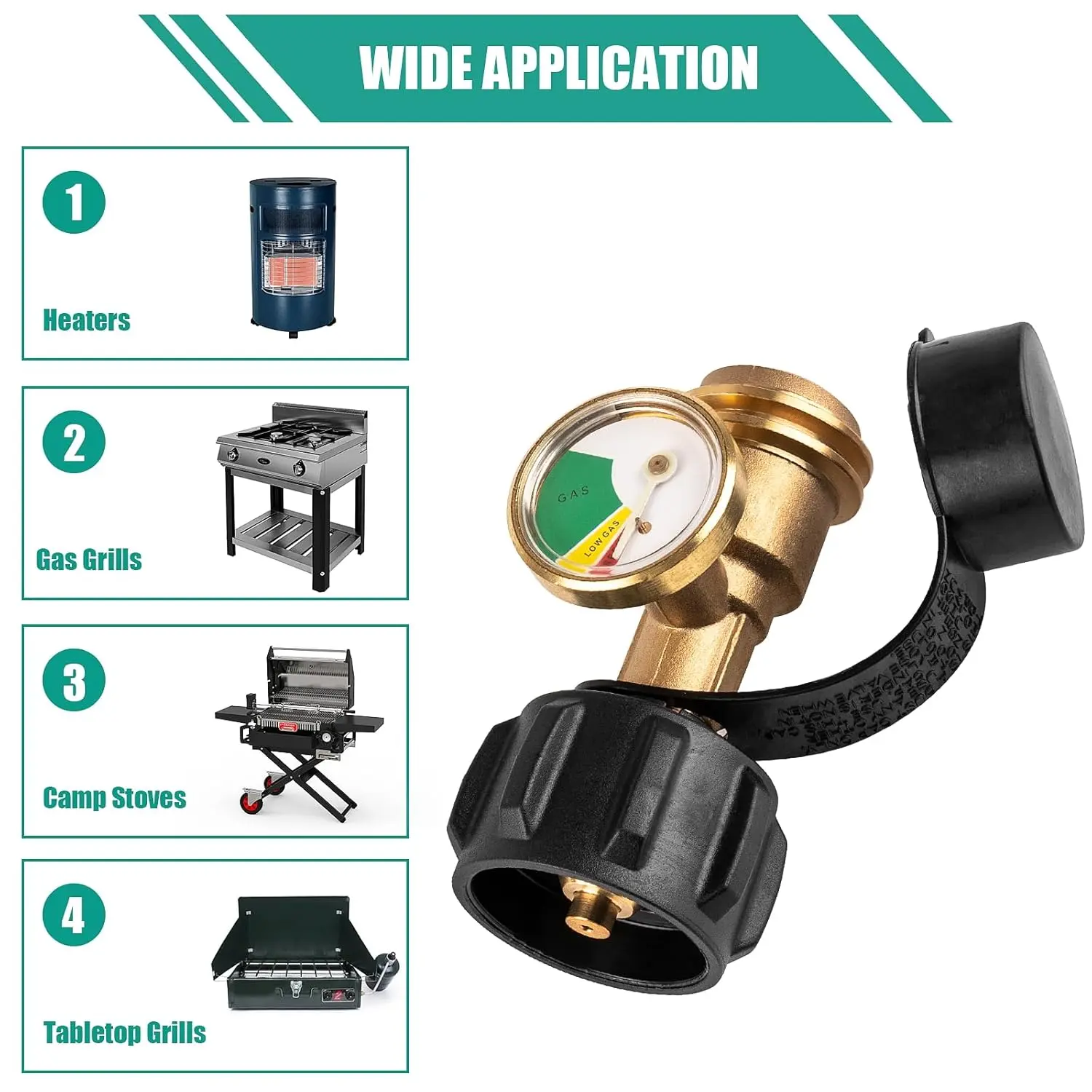 This set includes two gauges designed for 5-40lb propane tanks. Perfect for camping stoves, heaters, BBQ grills, and gas burners. The gauges feature a QCC 1/Type 1 connection, ensuring compatibility with various devices. Monitor your propane levels effortlessly and detect leaks for safety.