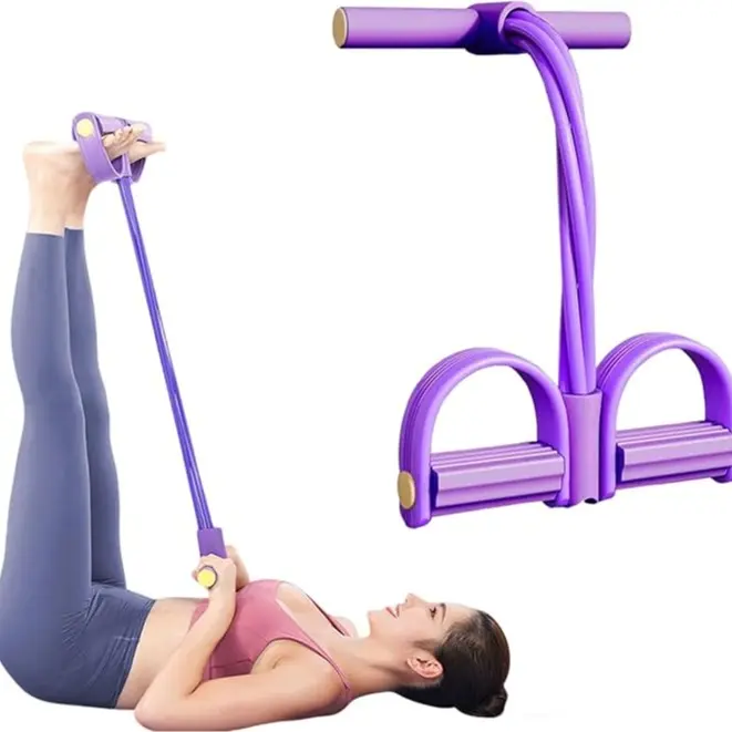 Multifunctional Pedal Resistance Band, 4-TubeStretch Band with Handle, Fitness ShapingYoga Exercise Equipment, Natural RubberTension Rope, for Abdominal, Leg, Arm, BackSlimming Training(Purple)