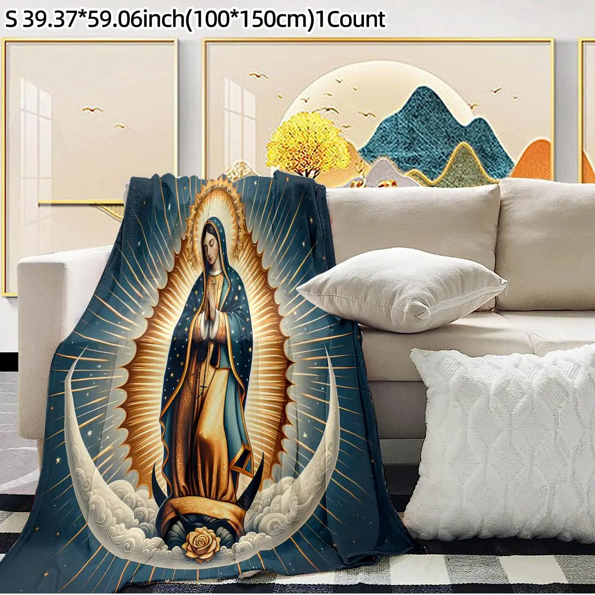 Virgin Mary Pattern Blanket, 1 Count Soft Warm Throw Blanket, Air-conditioned Room Blanket, Warm Nap Blanket for Home Office Camping Travel, Inspirational Blanket