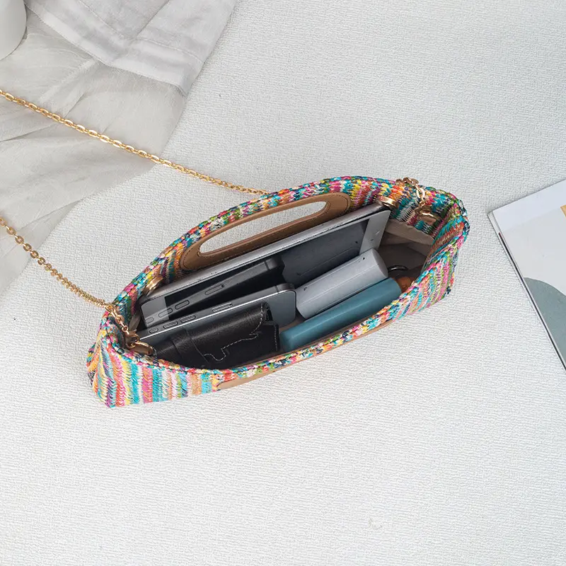 Elevate your summer style with this fashionable woven handbag. Perfect for beach trips and daily outings, it features a chain crossbody strap for versatile wear. The lightweight rattan design ensures comfort, while its breathable material keeps you cool. Ideal for casual vacations, this bag combines style with functionality.