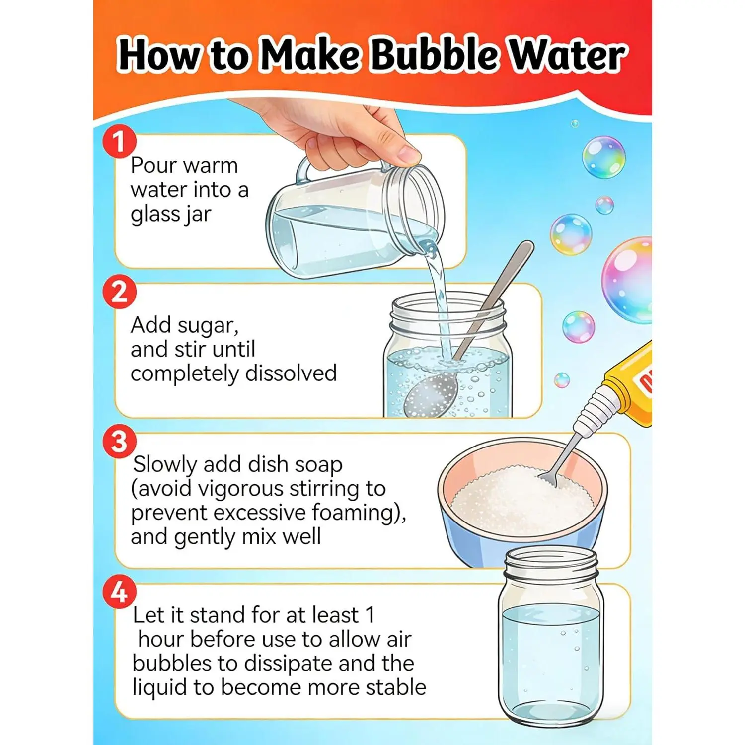 Our non-toxic, child-safe bubble formula lets you blow , bubbles with just a few simple steps.The compact design fits easily in your pocket, so you can take the fun anywhere-whether you’re at a party, in the office, or just relaxing outdoors.