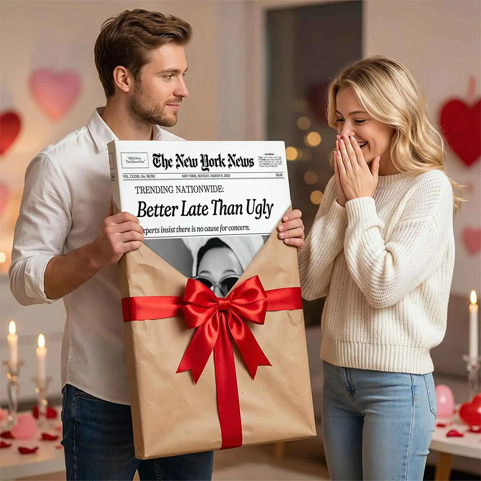 Better Late Than Ugly Retro New York News Canvas Wall Art, Vintage Newspaper Style Print, Funny Bathroom/Beauty Room Decor, Aesthetic Vanity Poster, Unique Gift for Makeup Lovers