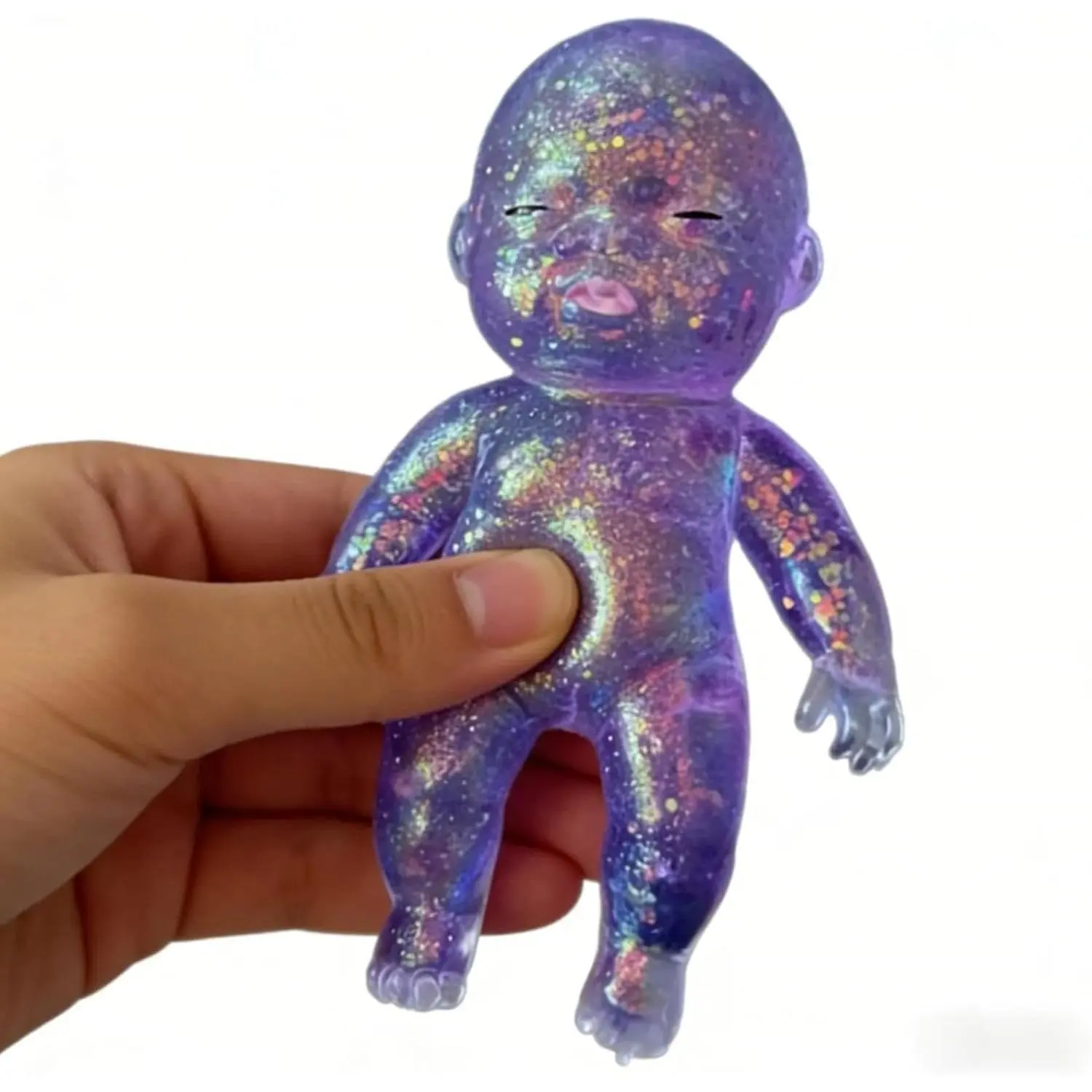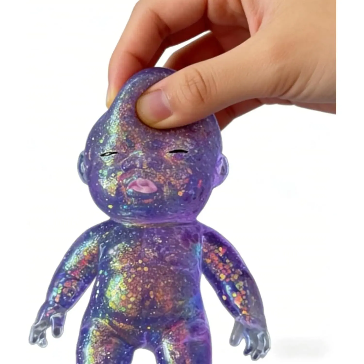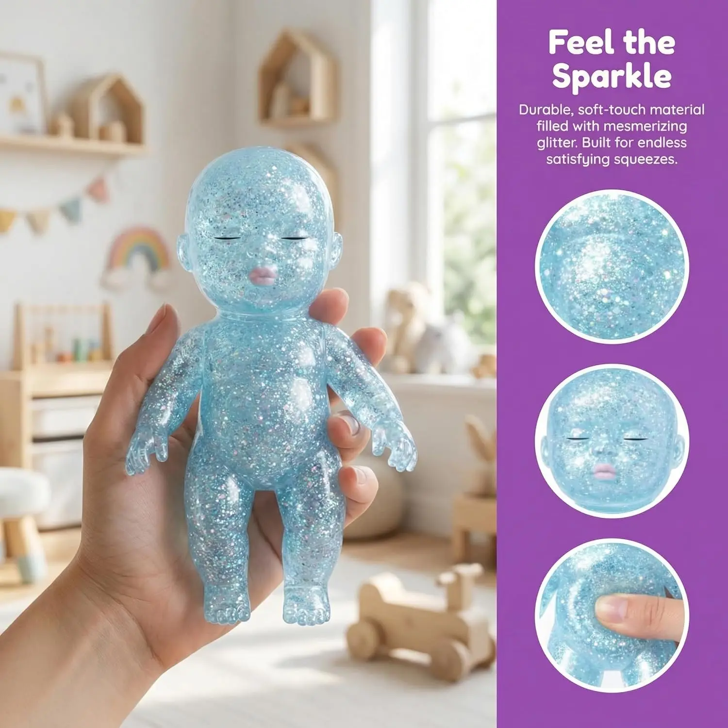 Glitter Figure Squishy Fidget Squeeze Item – 4" Soft Sensory Decompression Desk Decor for Adults, Portable Office Anxiety Relief Gag Gift
