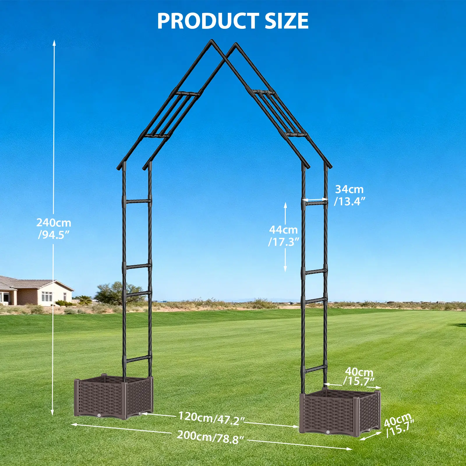 Each side of the arch includes a spacious planter box designed with 4 drainage holes to prevent waterlogging and encourage healthy root development. Plant your favorite roses, ivy, clematis, or vibrant seasonal flowers and watch them thrive.