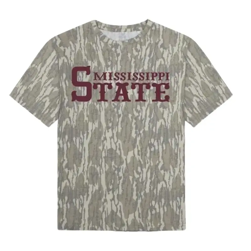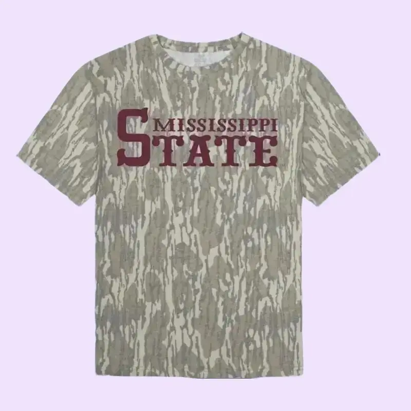 Mississippi State Mossy Oak Tree Short Sleeve Tee - Camo Pattern Unisex Casual T-Shirt with White Logo & Stretch Material, 3D Camo T-Shirt, 3D Camo Style T-Shirt, 3D Camo Shirt