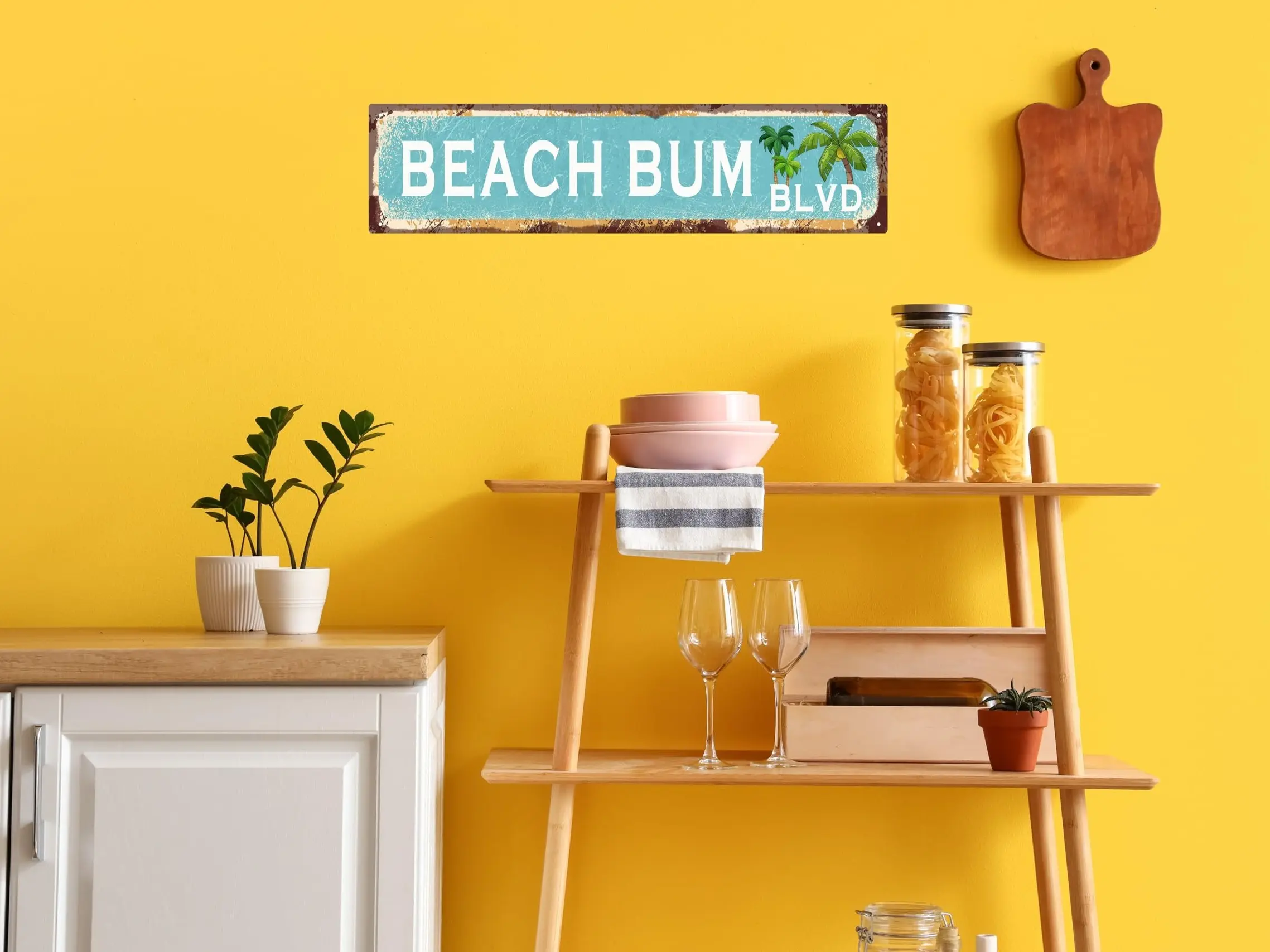 Vintage Tin Sign Retro Metal Beach Bum Blvd Signs Stylish Wall Art Plaques for Home Decor Bathroom Kitchen House and Gothic Wall Decor or as a Unique Poster 16x4 in