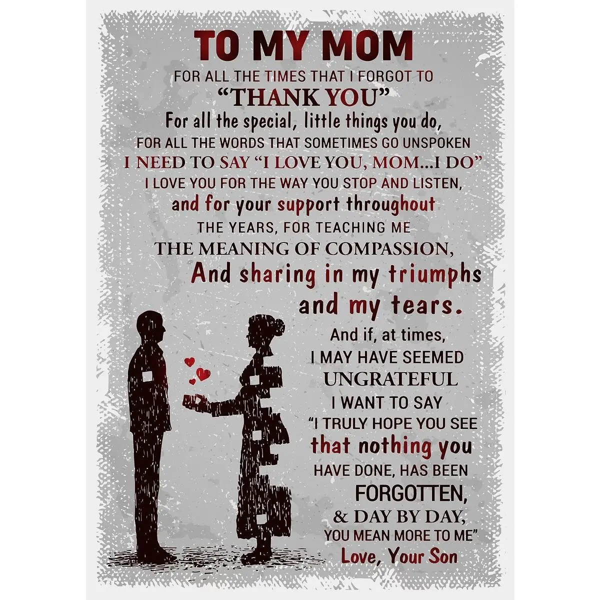 To My Mom Son's Thank You Poem Canvas Wall Art, Heartfelt Mother's Day Gift, Emotional Family Quote Print, Vintage Style Home Decor, Unique Gift from Son to Mom