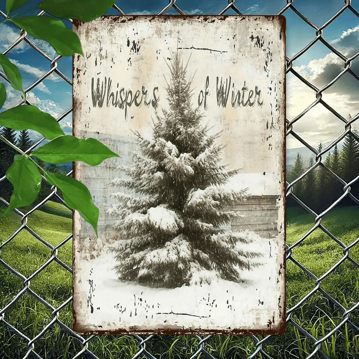 Whisper of Winter Metal Wall Decor Vintage Rustic Farmhouse Christmas Sign with Snowy Pine Tree No Electricity Heavy Duty Indoor or Outdoor Decoration for Home Cafe Bar or Living Room