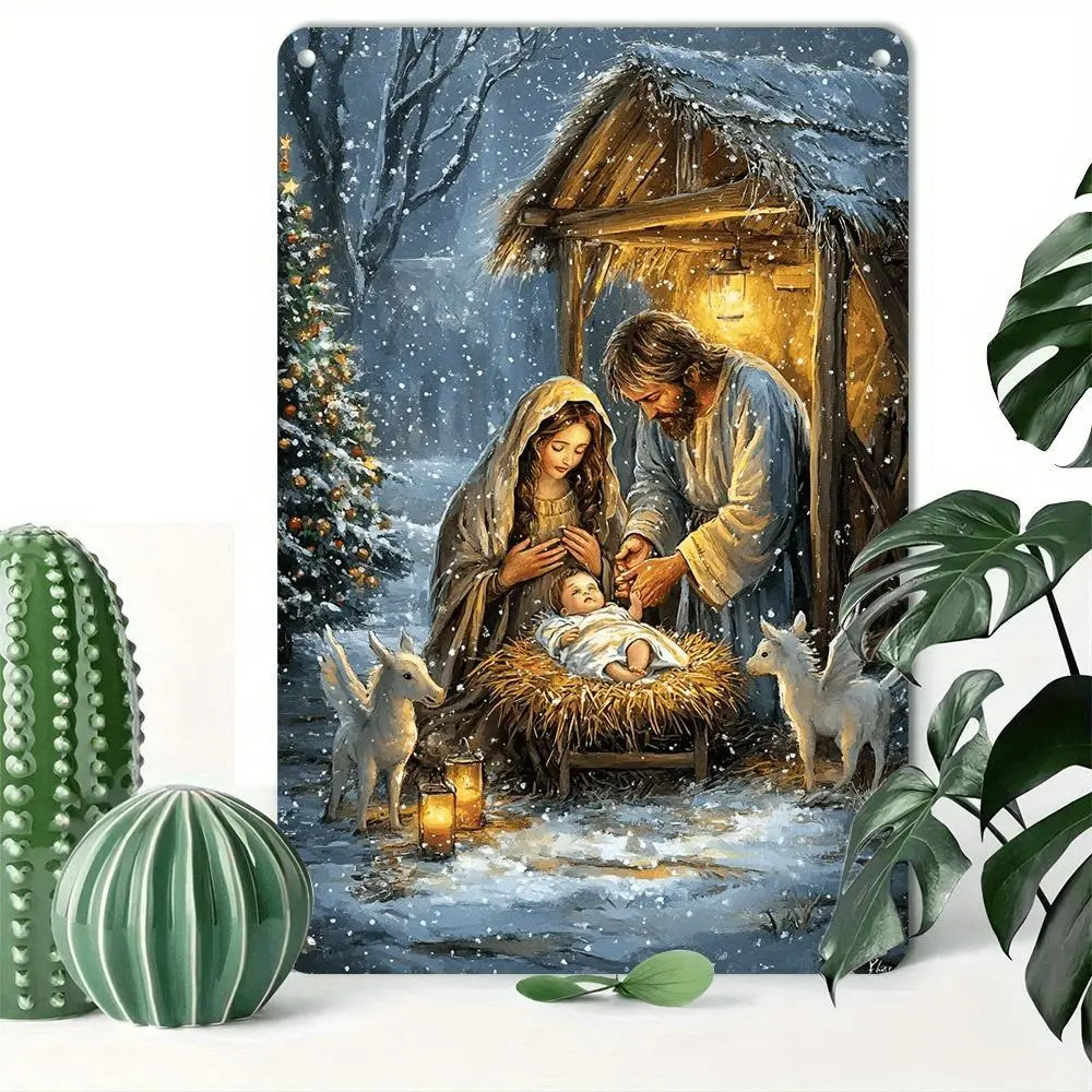 5. Festive Tin Sign Nativity Scene Christmas Retro Aluminum Wall Art Decor