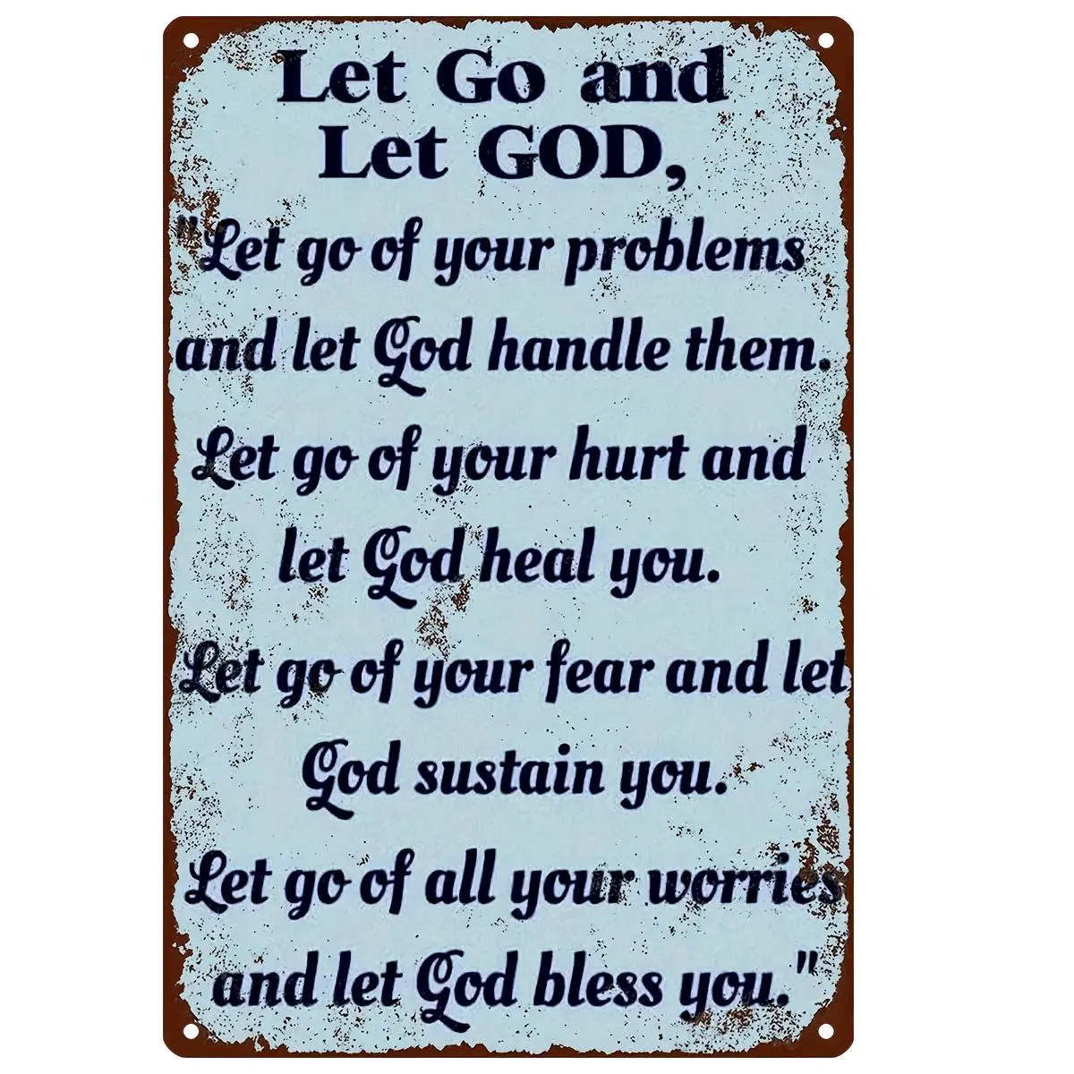 5. Vintage Metal Wall Sign Inspirational Quote Trust and Let Go to God Weatherproof and Pre-Drilled for Easy Hanging Ideal for Home Office Bar and Cafe Decor Metal Wall Art