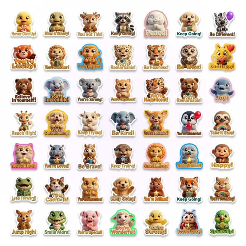 New 50-sheet set of 3D cartoon cute and adorable pet positive slogan stickers for waterproof cups and notebook decorative stickers
