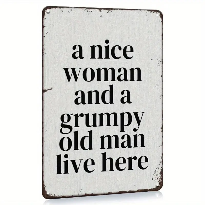 Vintage Style Metal Sign Featuring A Nice Woman and a Grumpy Old Man Humorous Wall Art 12x8 Inches Rustic Decor for Kitchen Cafe Pub or Home