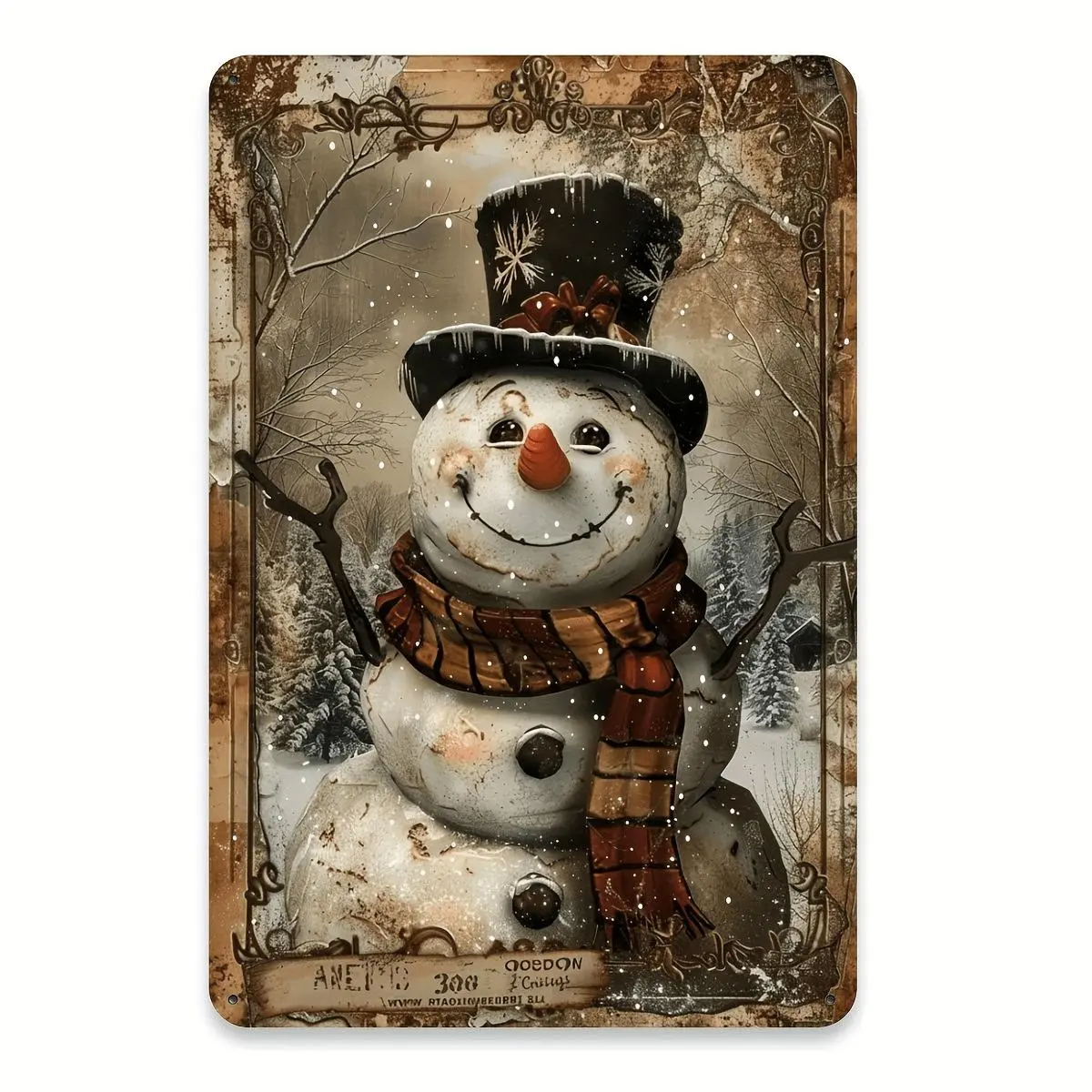 5. Vintage Snowman Metal Tin Sign for Christmas Indoor and Outdoor Wall Decor 8x12 Inches