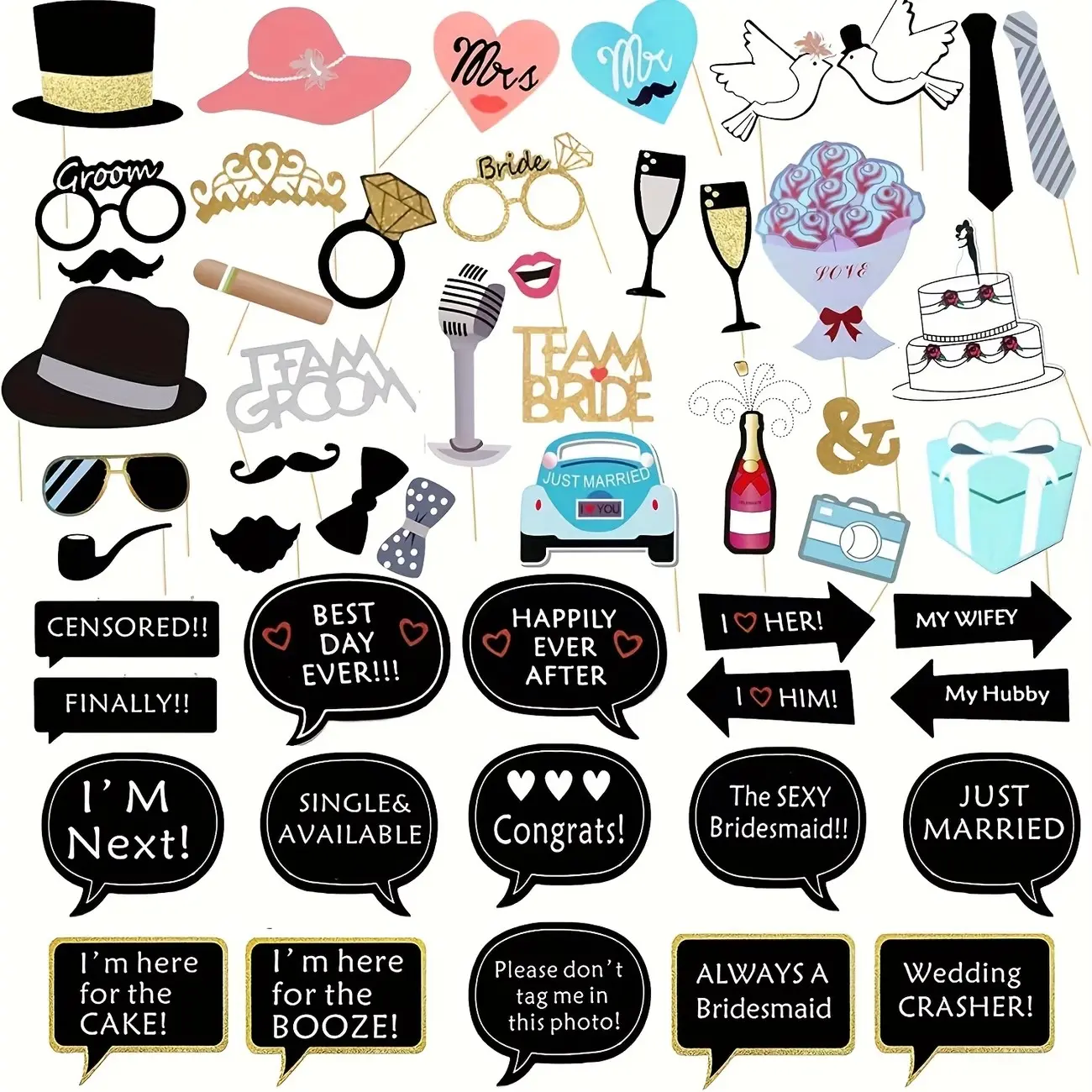 52pcs Wedding Photo Booth Additions, Creative Reception Decor, Capture Funny Moments, Perfect for Weddings and Bridal Celebrations