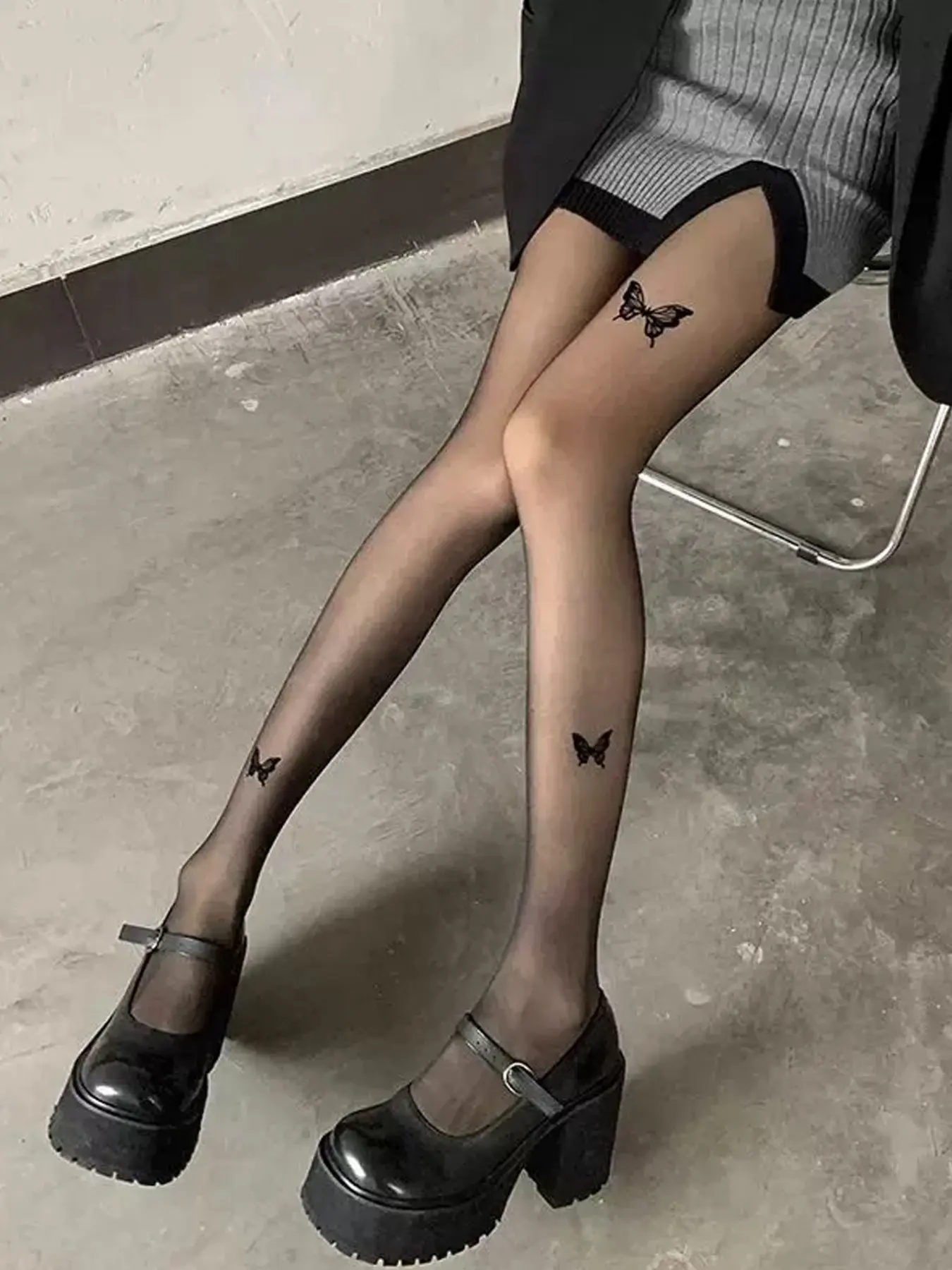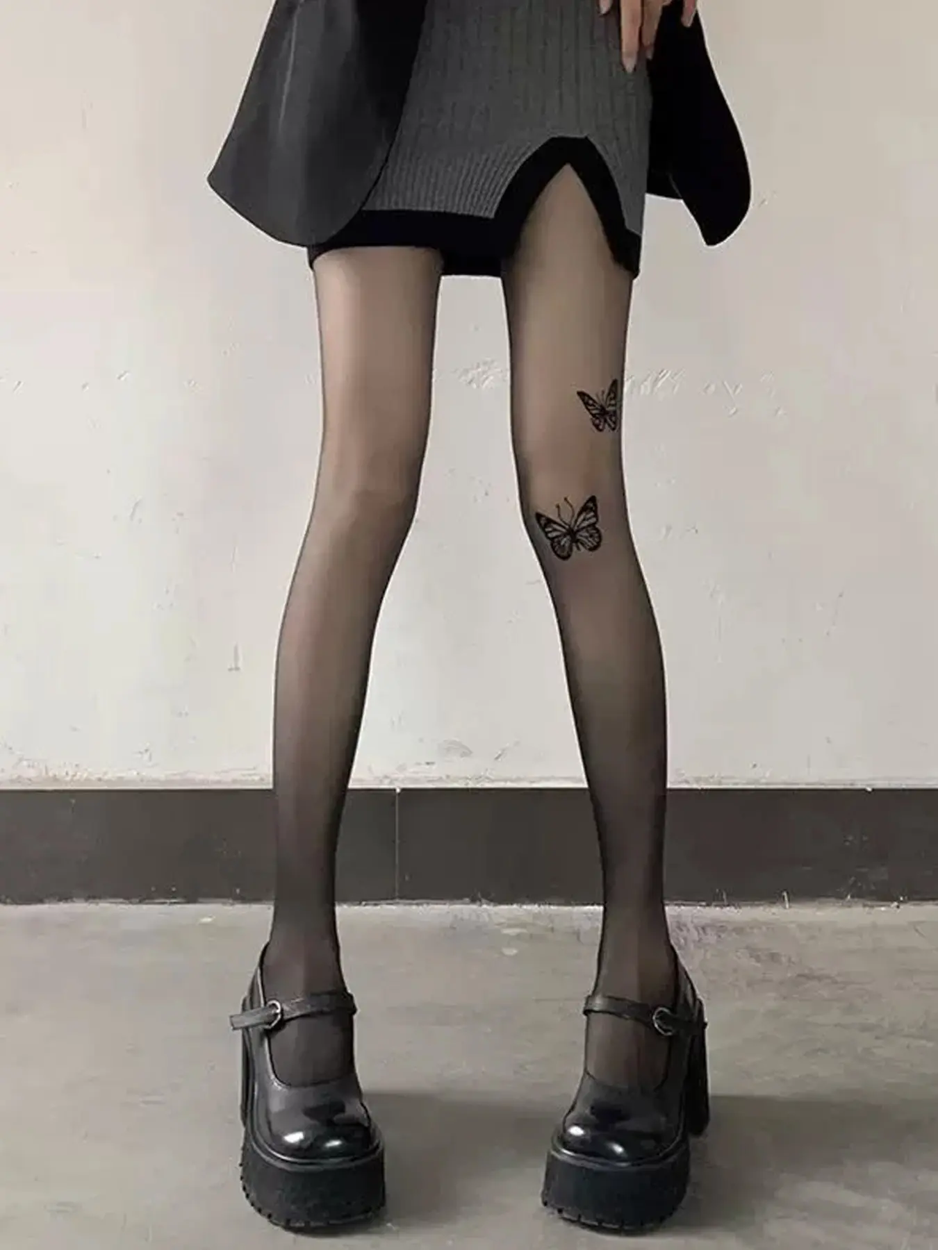 Spring Summer Women's Butterfly Print Stockings, Sexy Mesh Underwear Socks, Anti-Pilling Silk Socks, Elegant Fitted Design