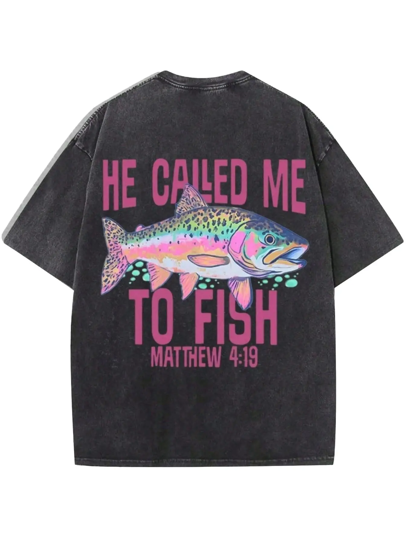 Men's Vintage Washed Trout Fishing Print T-Shirt, Loose-Fit Casual Long Sleeve, Breathable Polyester, Streetwear Style, All Seasons