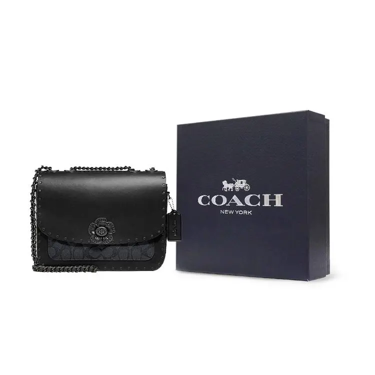Packaging Dimensions: 9.5" (L) × 6.5" (H) × 3.5" (W) / 24 cm × 16.5 cm × 9 cm. Includes branded dust bag and COACH authenticity card in a signature COACH gift box.