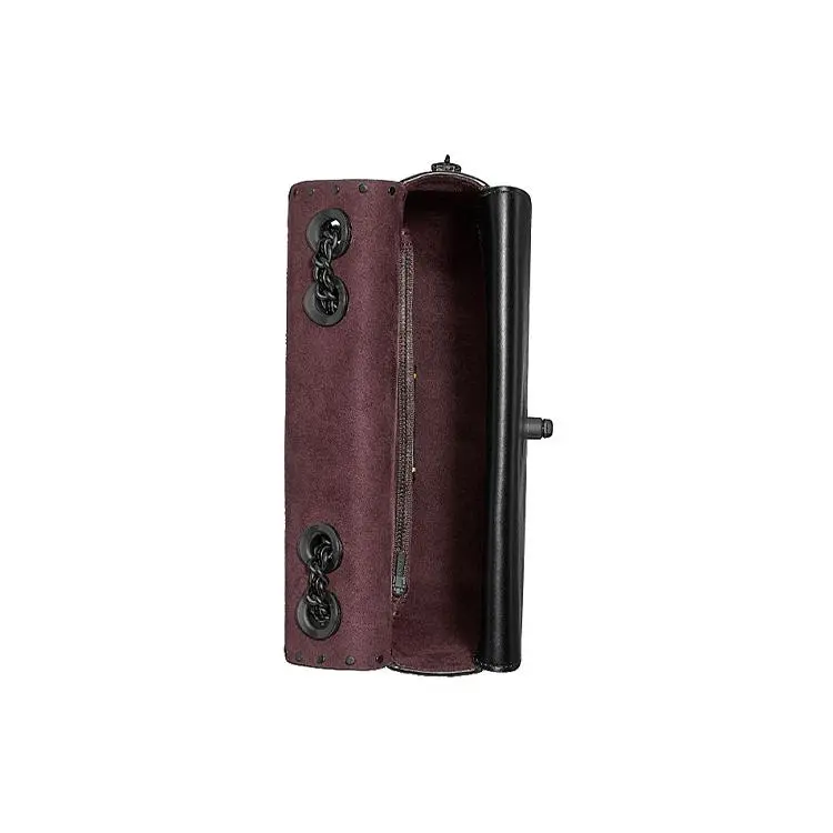 COACH Madison 23 Leather Crossbody Bag for Women – Camellia-Metal Clasp, Rivet-Embellished, Snake-Print Detail, Medium Size, Black
