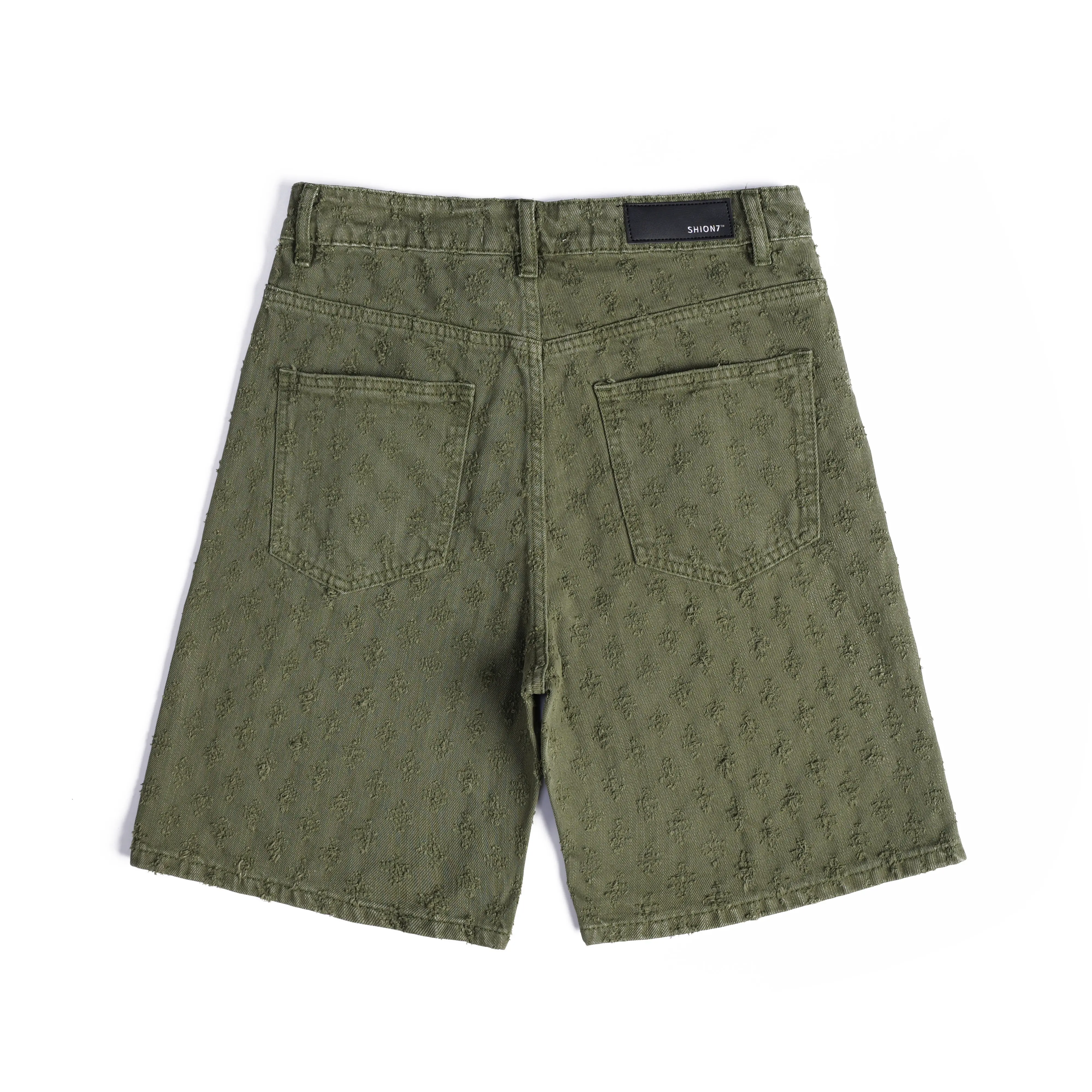 ✨ Elevate your summer wardrobe with these Green Distressed Denim Shorts. Perfect for men seeking a loose fit and mid-rise design, these shorts are a must-have for casual outings. The distressed look adds a trendy edge to your outfit. Ideal for warm weather, they offer both style and comfort.