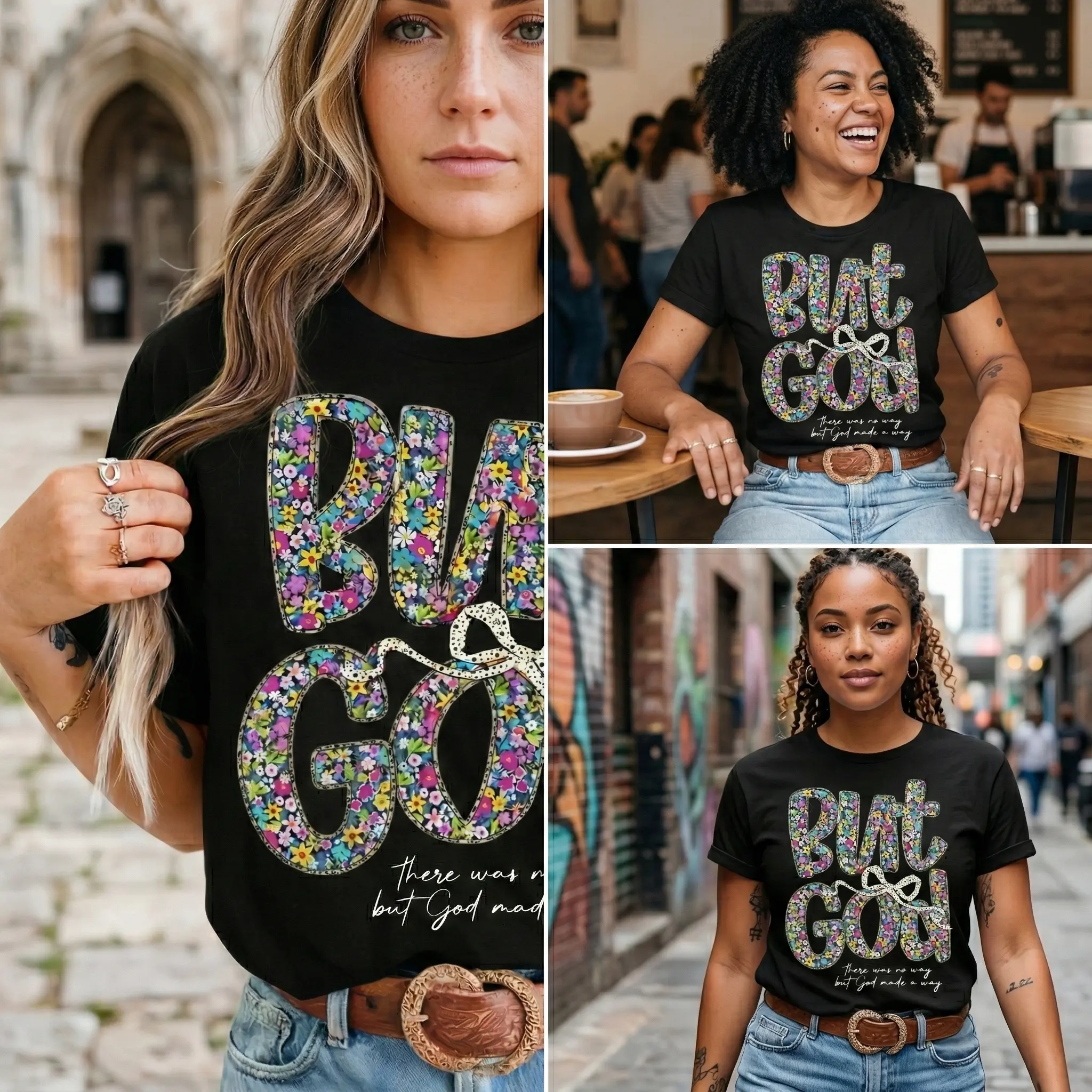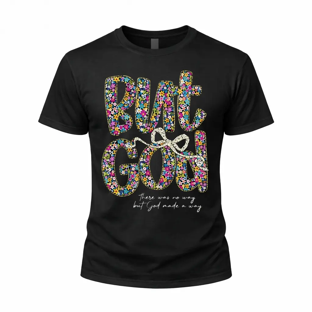 Women's Flowers Floral But God Women Shirt, Christian Clothingcotton Tee, Gift for Her, Jesus Apparel, Religious Top Comfort Summer Womenswear oversize Tee FASHION  Printed T-shirt