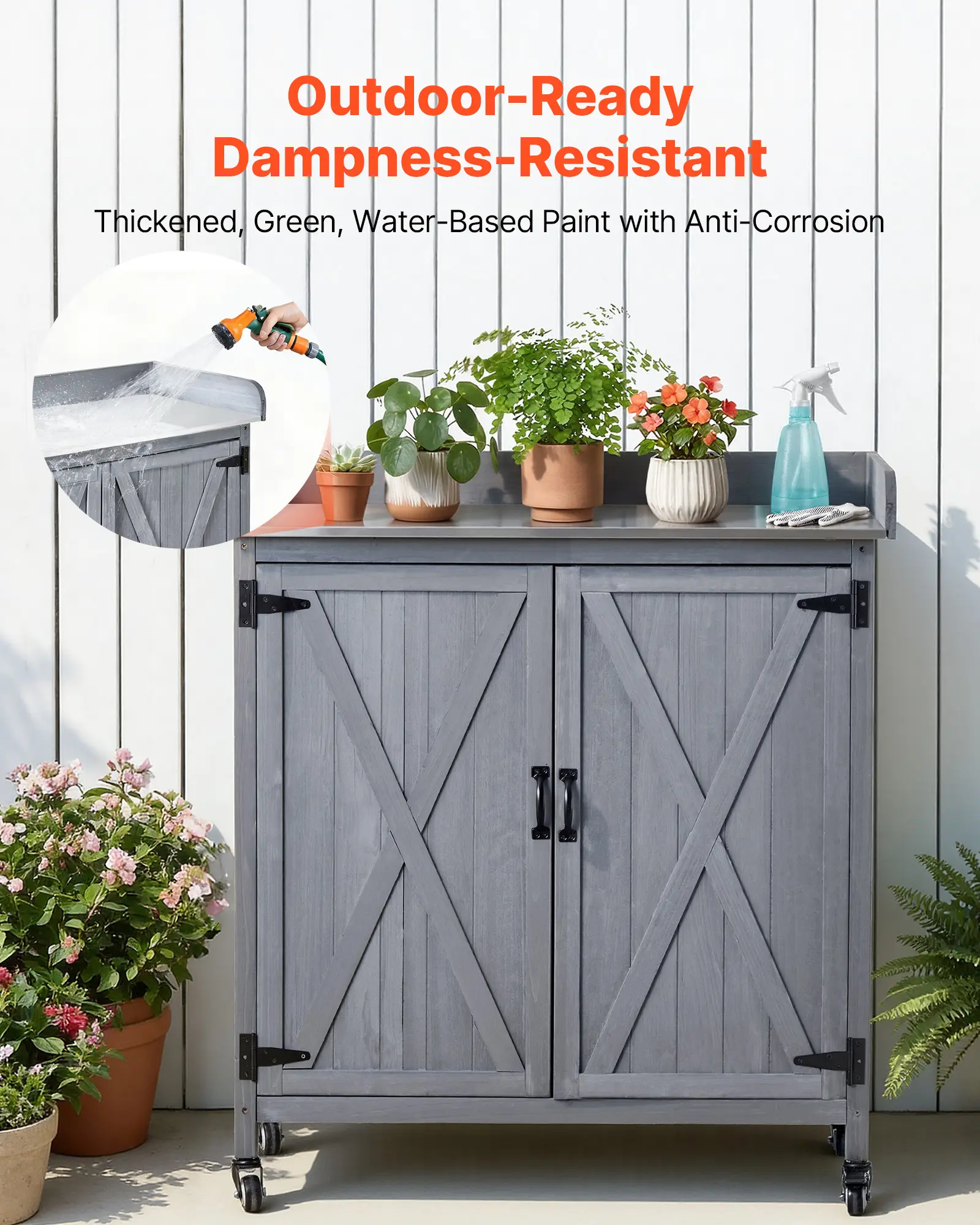 Ample Storage Space: Equipped with a cabinet, our potting table holds larger tools and fertilizers, keeping supplies organized and easily accessible