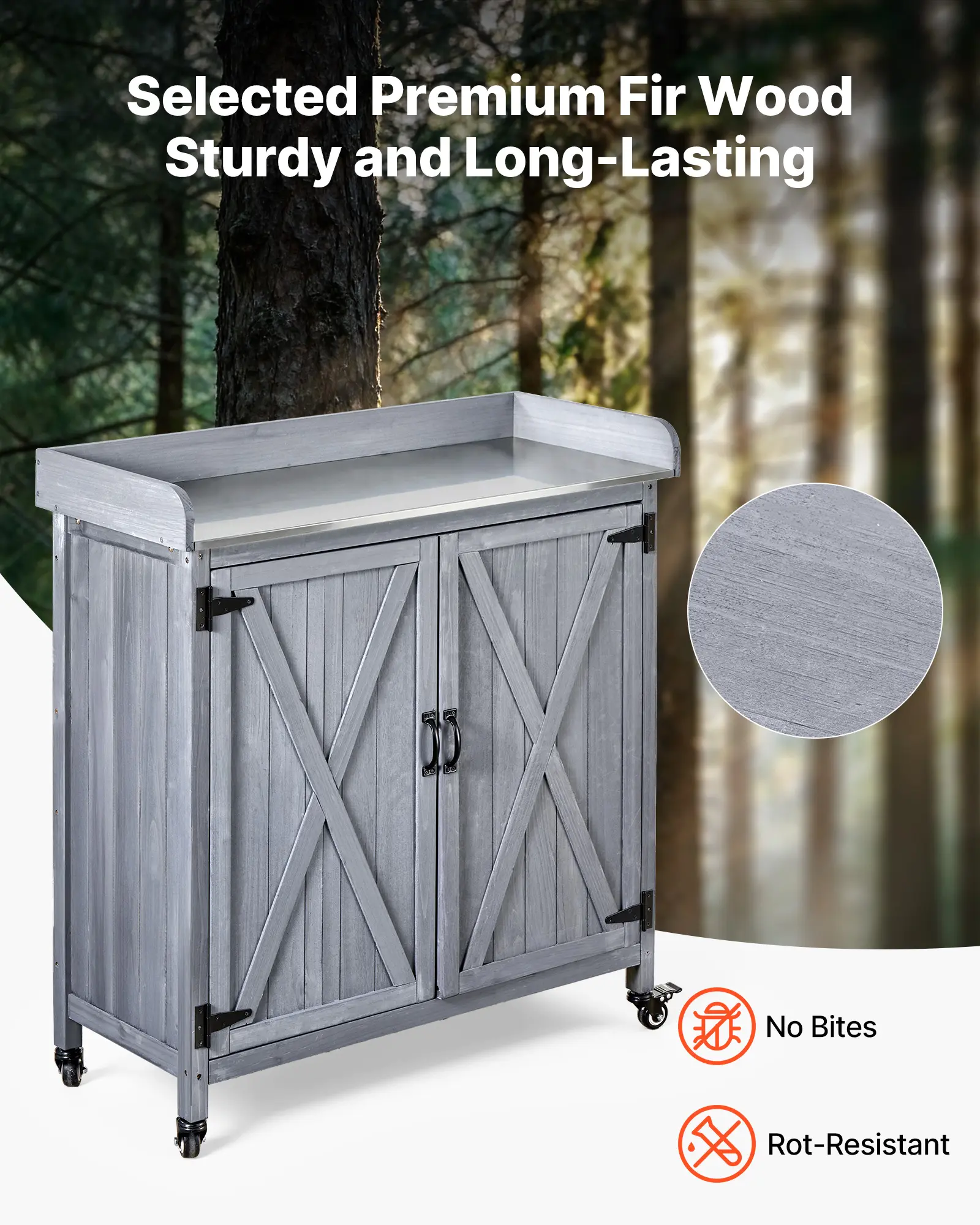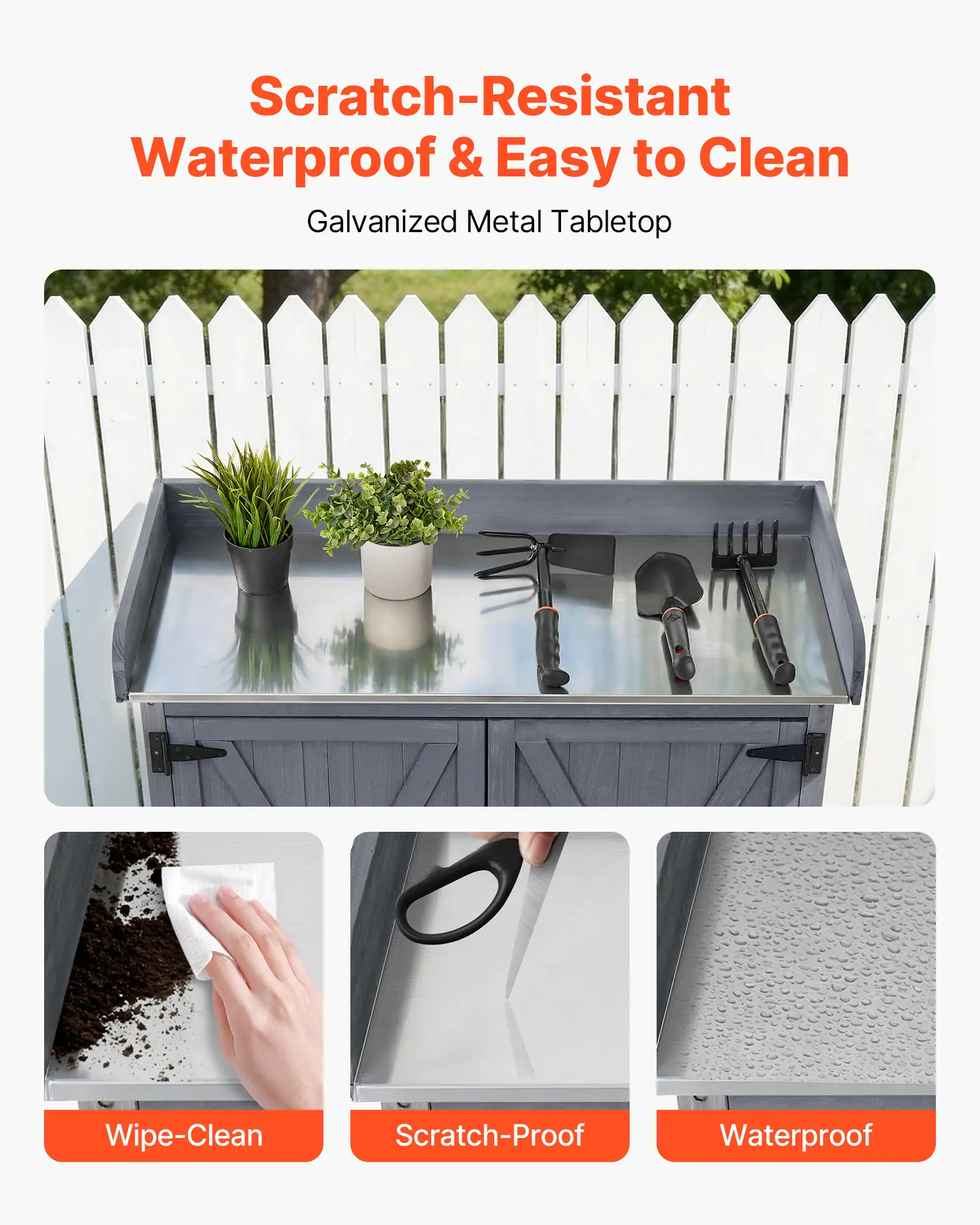 Galvanized Metal Tabletop: Our outdoor potting bench resists water and rust, and wipes clean in seconds. Waterproof and built to last, it is ready for heavy tools and everyday garden work