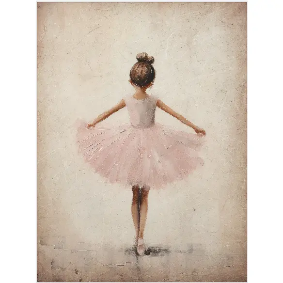 Vintage Little Ballerina in Pink Tutu Oil Painting Canvas Wall Art, Cute Ballet Dancer Print, Aesthetic Nursery/Girls Room Decor, Elegant Dance Studio Poster, Unique Gift for Ballerina Lovers