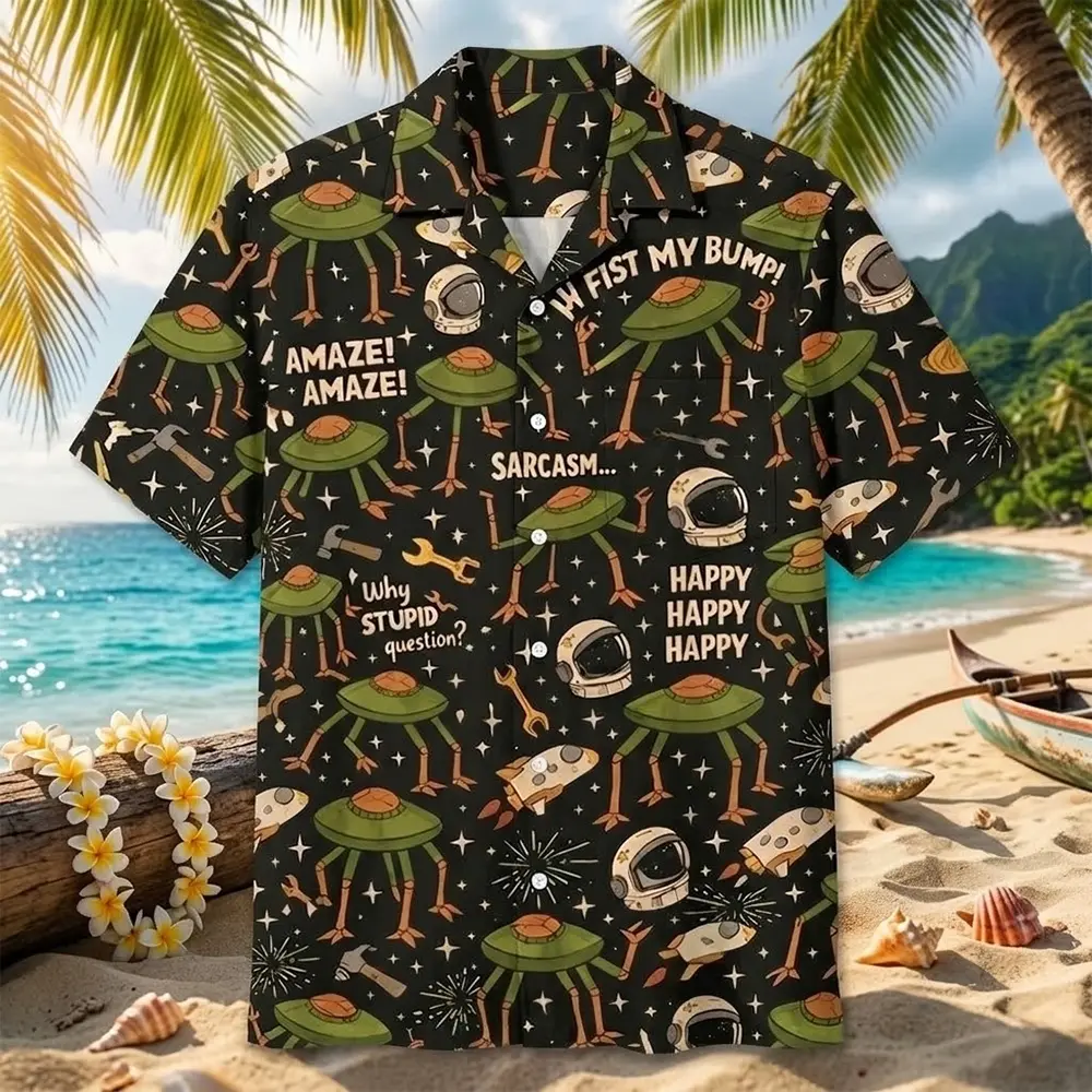 Project Hail Mary All-over Print Short-sleeve Hawaiian Shirt, Rocky Alien Amaze Summer Beach Tropical Button Down Shirt, Casual Vacation Floral Shirts